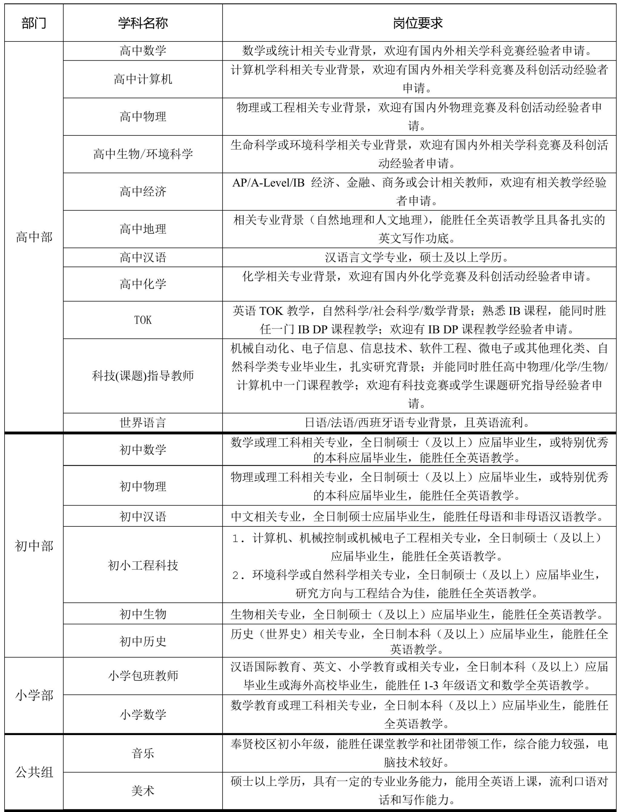 现面向海内外招聘教育英才,共同谱写上海中学新的辉煌。