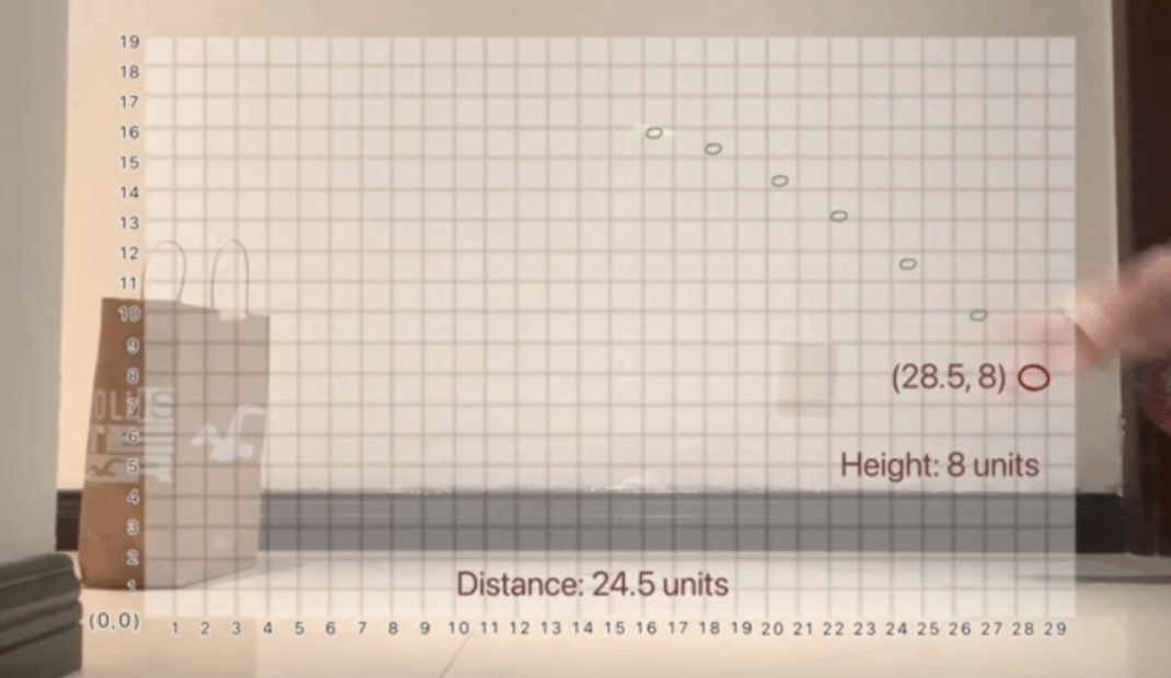 在这项课题研究中,学生们自主组成小组开展探究活动。每个小组需要录制一段投篮视频,并通过观察视频中记录的抛物线,建立相应的坐标系,求解出对应的二次函数。随后,小组之间交换视频,学生们通过观察他人的投篮视频,检验其设定的坐标系和方程式是否正确。同时观察前半段视频,结合相关数学知识演算验证,给出预测来判断该组是否能够成功投篮。