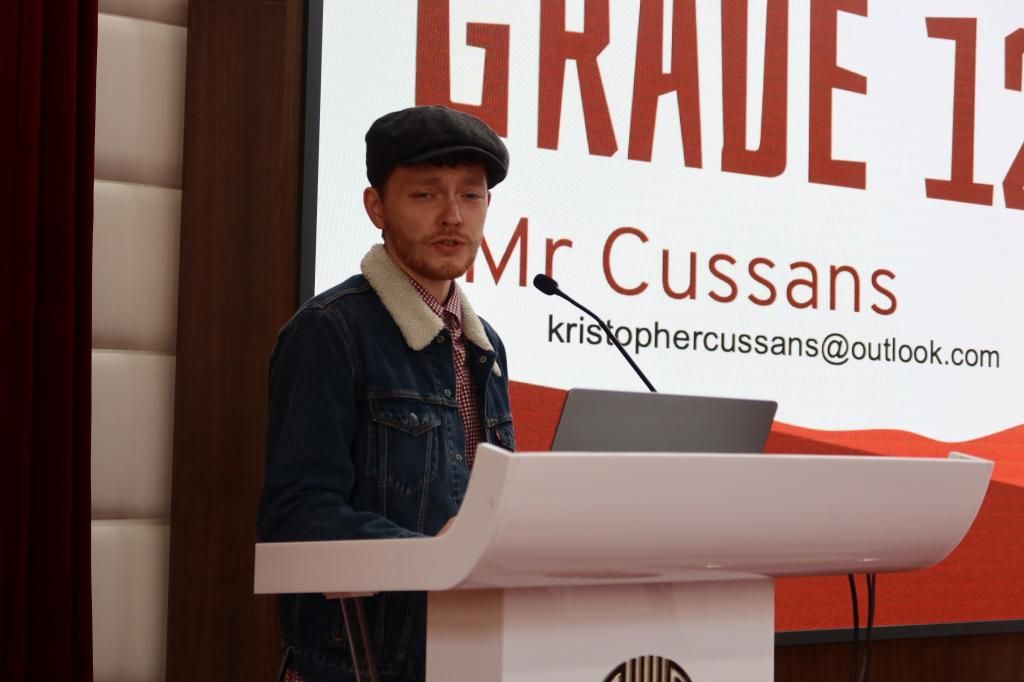 3月16日,在先棉堂礼堂召开的晨会中,Mr.Cussan介绍了下学年新增的哲学选修课。他首先说明这门课没有门槛,想参加的学生都可以报名参加。随后他先是科普了哲学课与其他课程的异同,又提到了在这门哲学课中会探索的一些哲学话题。这些话题都与大家所学的学科和日常息息相关。例如生命的意义、时间的存在、自由意志的真实性、视角的形成、科技与伦理以及逻辑形成。