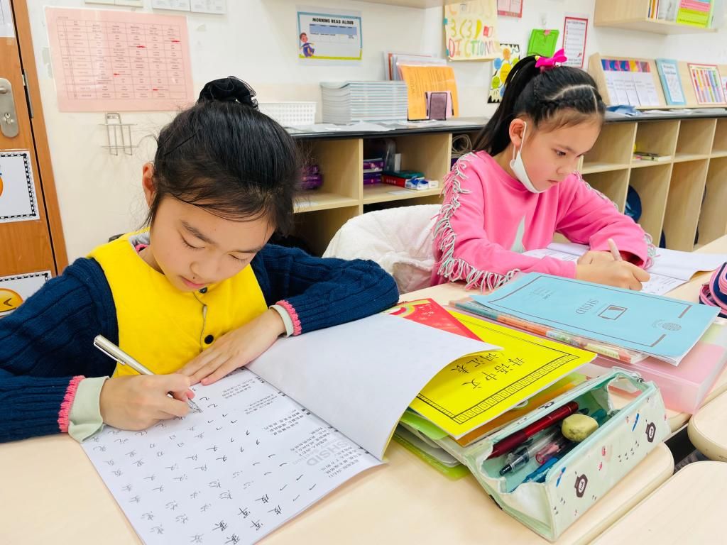 “一寸、一拳、一尺”,三年级的学生们个个坐如松,教室里鸦雀无声,每个人都专注无比。原来他们在练习硬笔书法呢!本学期的第二周和第三周的中文展示课上,三年级的学生们开始跟着老师写起了硬笔书法。