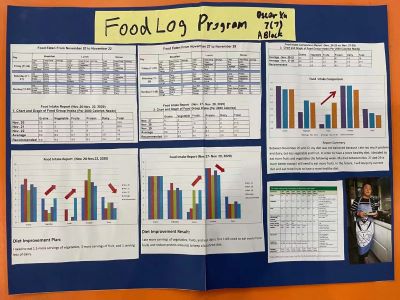 在成果展示课上,学生们都自信满满地向大家介绍自己的佳作。他们互相评比,一较高低。虽然这次课题作业结束了,但是它的影响却是长久的,它将会是同学们健康饮食的最佳指引。