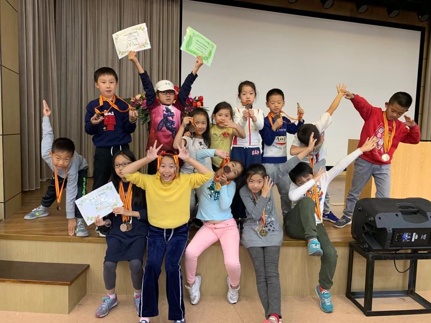 12月14日星期四下午,上海中学国际部浦东校区的一到三年级的学生们集体来到大礼堂,参与了这场热闹异常的运动会颁奖典礼。当主持人Mr. Rory念出一个个名字时,大家都集体为之欢呼,为他得到的荣誉而骄傲。得到奖牌的孩子们兴高采烈地高举奖牌,而作为观众的学生们也有礼貌地为所有参与过运动会的运动员们鼓掌。这充分展现了学生们的运动精神,真是一次有意义的运动会总结纪念!