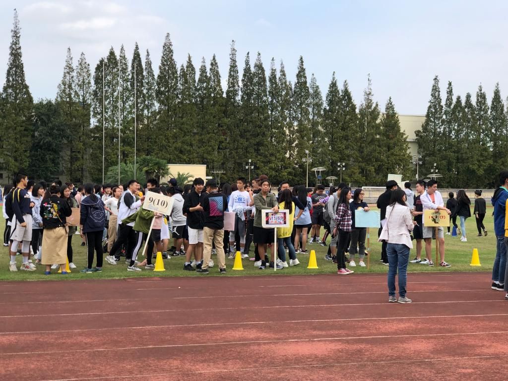 上中国际秋季运动会即将举行。10月9日下午,11、12年级的学生们早早地从各自的体育课中抽出时间,准备运动会前的盛大开幕式。班代表们统领着他们各自班级的方阵,自豪地高举着他们原创设计的班旗,其他学生们则在后面排成四行。