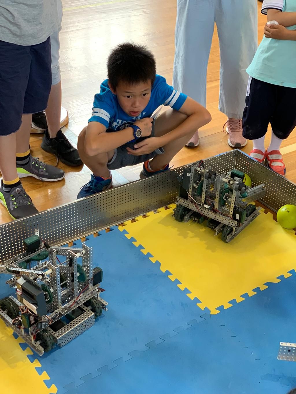 中午12:45,6年级学生排队进入体育馆参观。场馆四周分布着各种站位,场馆中央是人工智能活动区。场馆北边是工程展位,同学们在这些展位前积极参与了演示活动,比如在乐高社团让机器人转魔方,而每一次机器人总是又快又准地恢复打乱的魔方;在移动设备编程展台上进行了记忆游戏大比拼。对于科技迷来说,这个区域是他们流连忘返的好地方。但如果你不是科技迷,别担心,移步到下一个展位,那里一定有你的一片天空!
