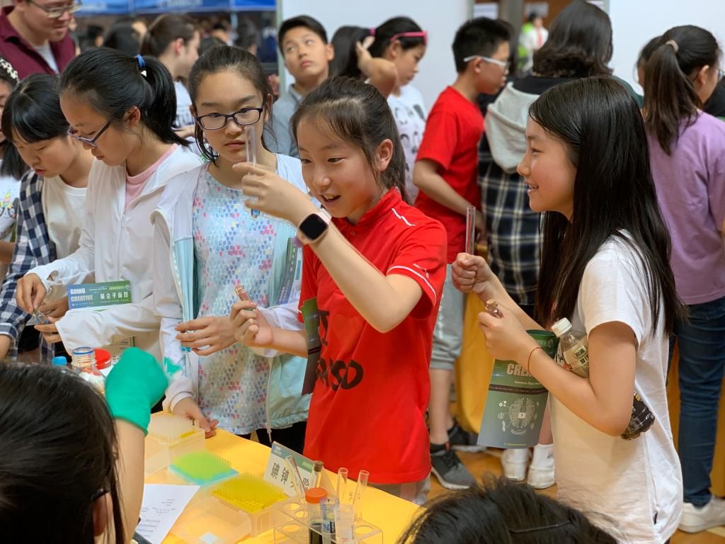 5月23日下午,国际部初中段一年一度的科技节——创意启智嘉年华正式启动。国际部的创新课程社团在现场设立了许多展位,把他们一年来学到的科学知识和创新成果通过各种有趣的实验和游戏展示给大家。本次科技节还邀请了中国科学院的多家研究所和科研公司设立了展位。