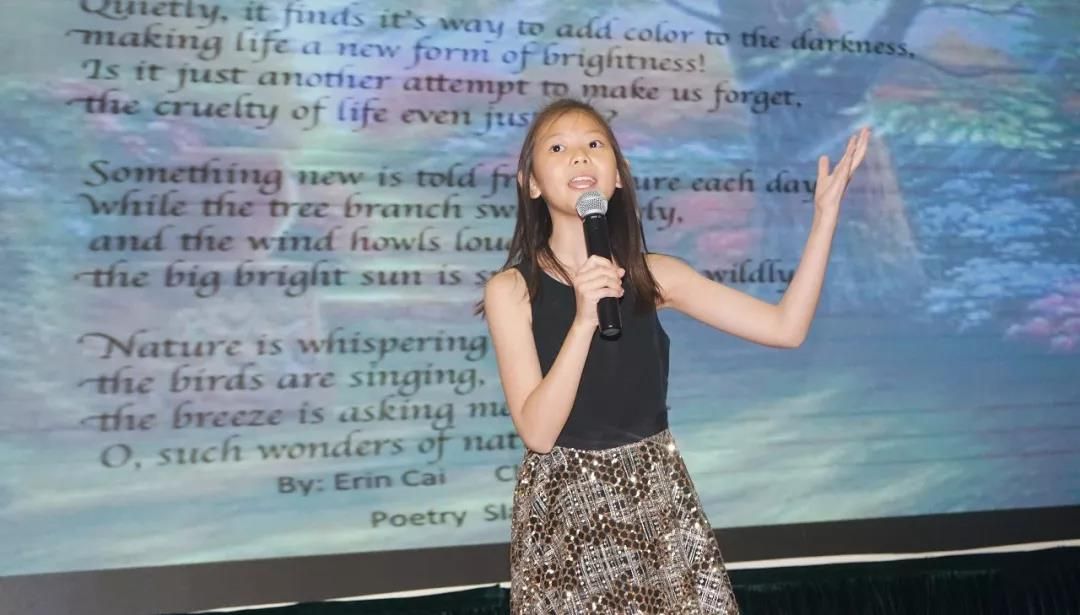 精彩的原创诗歌展示给大家留下了深刻的印象。有的小诗充满童趣,描写了在空中舞蹈的雨滴;有的诗句发人深省,呼吁大家关爱和呵护地球母亲。每一位选手展示之后,观众们都报以热烈的掌声。