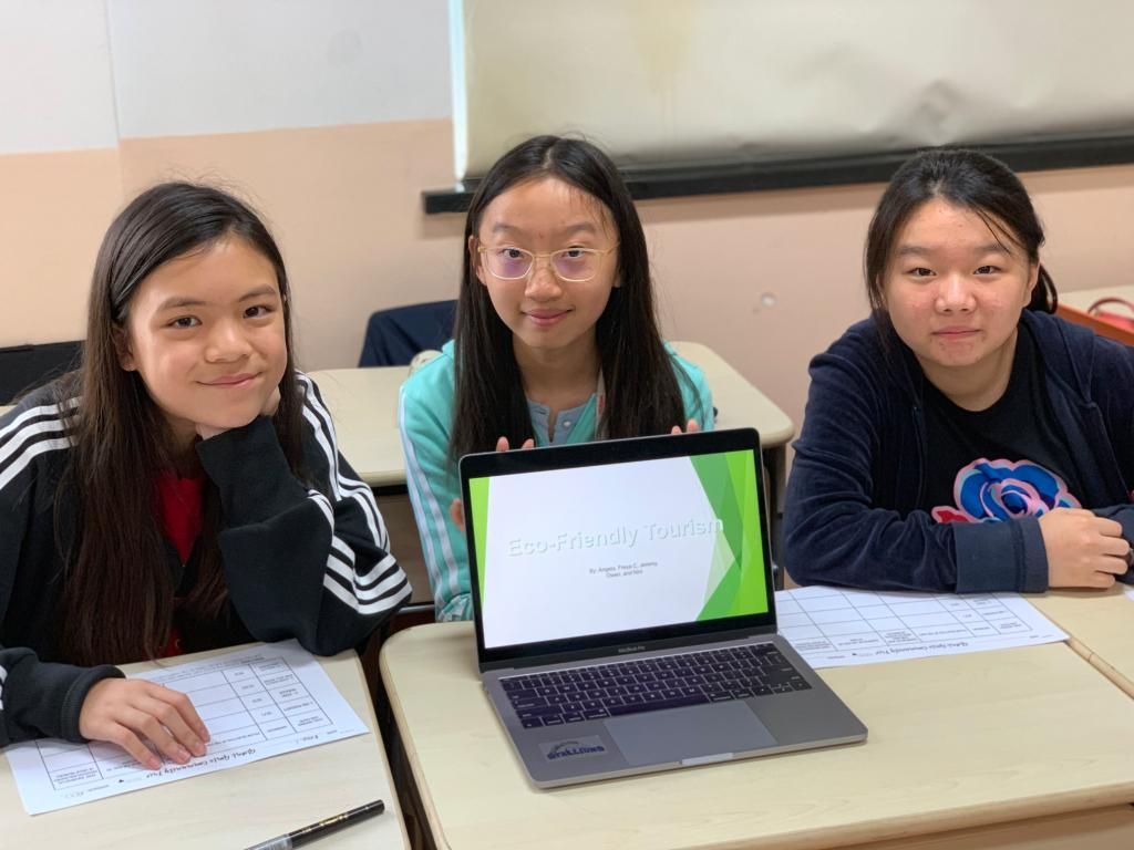 学生们很有创意,运用各种方式来展示他们的目标。有的制作了引人注目的幻灯片,有的制作了五颜六色的海报。有些同学上台做了引人入胜的演讲, 而其他人则耐心地聆听。例如,一个班级介绍了“可持续城市和社区” 这个目标。班级里的其中一组通过表演的方式来展现,效果简直太棒了! 另一个班级探讨的是“两性平等”话题,学生们编创了一个关于这个话题的故事,吸引了大家的关注。教室里同学们三五成群讨论着,时不时传出一阵阵笑声。