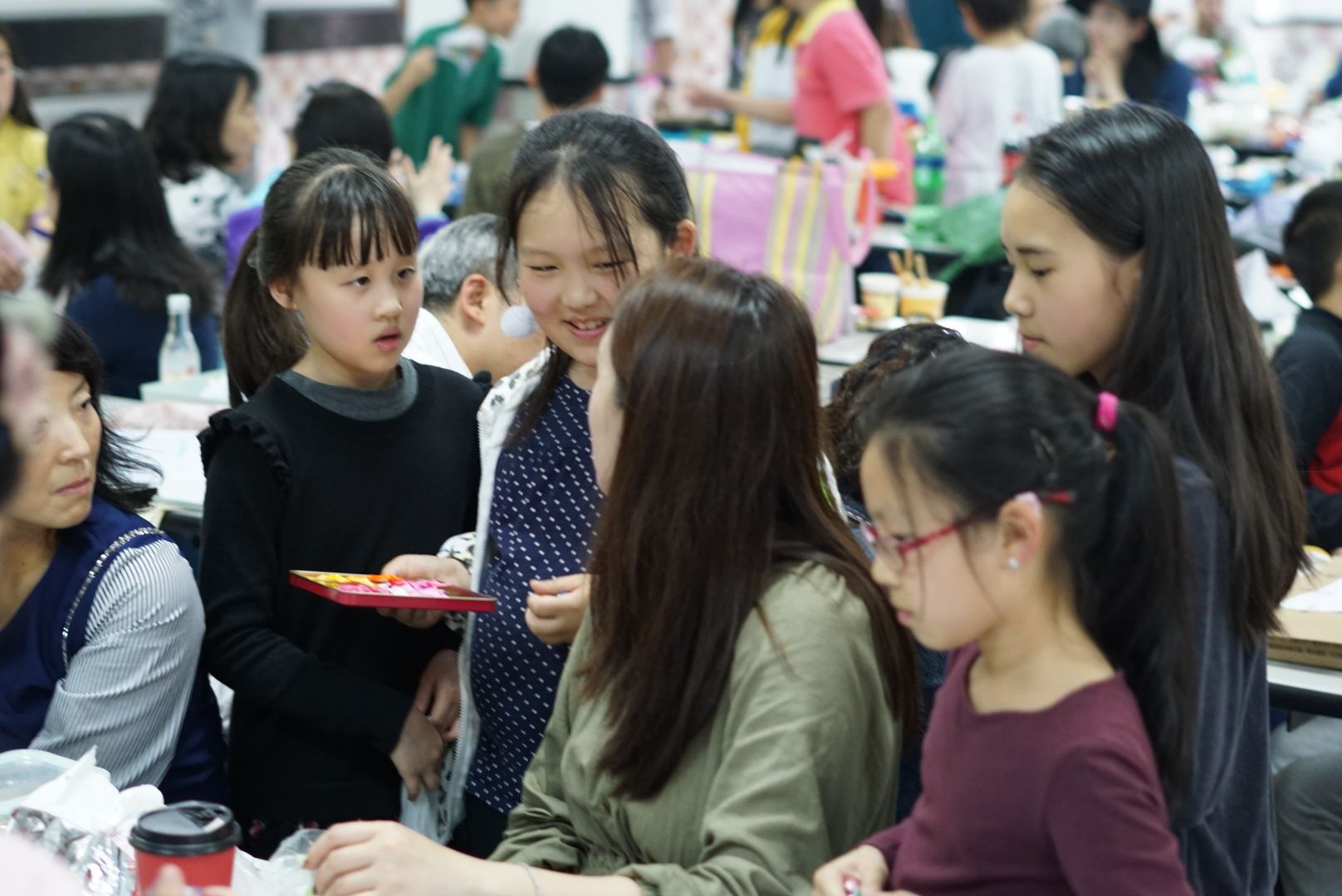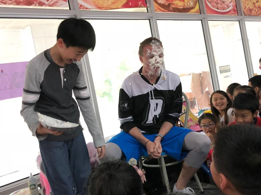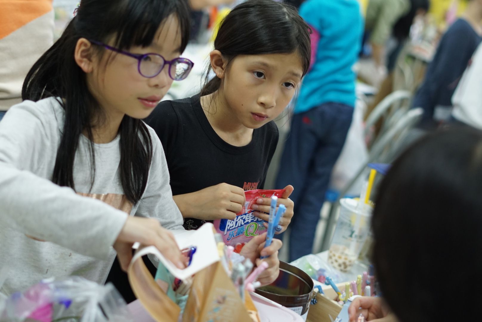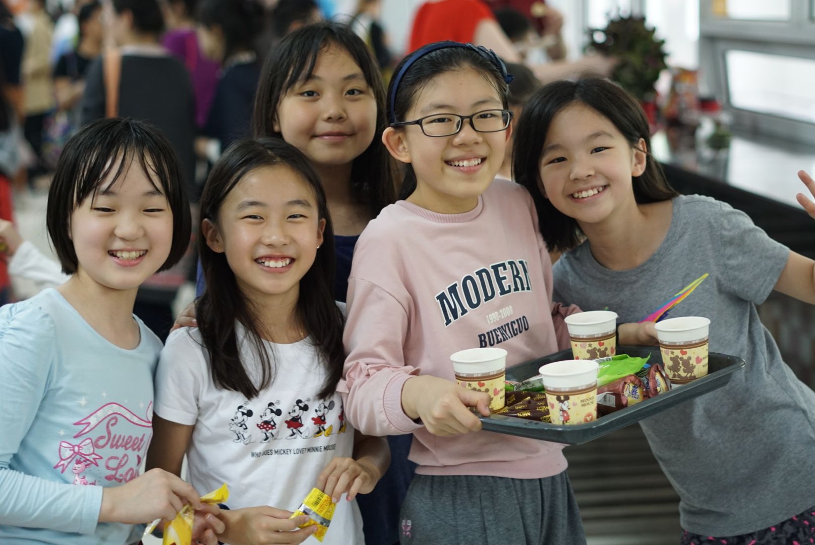 终于,在下午12点40分,义卖会正式开始,四年级的学生们在家长的协助下开始卖起了各种有趣的商品:手工饼干、咖啡、冰激凌 、家长制作的意面、小饰品、书本、文具等等。除了实物商品之外,还有各种非常有趣的游戏:幸运大转盘、掷飞镖、砸金蛋、娃娃机等。家长们放下手头繁忙的工作,尽心尽力地帮助孩子们卖出商品,收获更多的筹款,整个会场成为了欢声笑语的海洋。