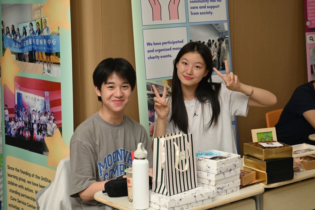 在本次活动中,最具意义的部分莫过于“给予”。当学生们思考“全球意识的内涵”时,大多数人谈到了“帮助他人”和“保护地球”的价值。为此,8年级的29个社会服务学习小组也在现场设置了展示摊位或宣传海报,分享他们一年来的服务学习成果,并将各自的服务主题与联合国17项可持续发展目标(SDGs)进行联结。6、7、8年级全体学生投票选出自己最关注的可持续发展目标,以此决定本次活动善款的最终用途,为未来的社会服务学习方向提供了切实依据。8年级的多个服务学习小组,如 Artistic Media、Goodball、Katadog、Medishine、SciAcademy、STUSOC、PRIMO、Tales for Tomorrow、Tutoring Group、对白社、Gazette 和 Indigo,积极参与了本次 Global Citizen Day 的慈善义卖活动。MFP 小组则组织了开放麦表演,为活动增添了艺术氛围。学生们以实际行动展现了关爱他人、服务社会的责任感。