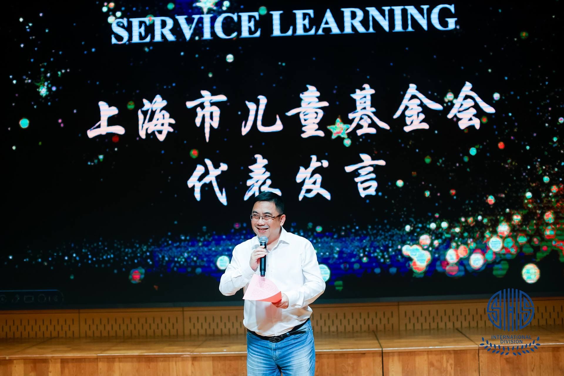 来自8-2的Cathy与8-11的Daniel以热情洋溢的主持开场词向所有到访的家长代表们及校外公益的联络老师们表达了热烈的欢迎,并邀请上海中学党委书记张泽红老师致辞。随后,上海市儿童基金会副理事长陈勇先生上台发言,表达了对学校过去十一年服务性学习成就的肯定,展望双方在未来可以进行更多合作,现场掌声如潮。