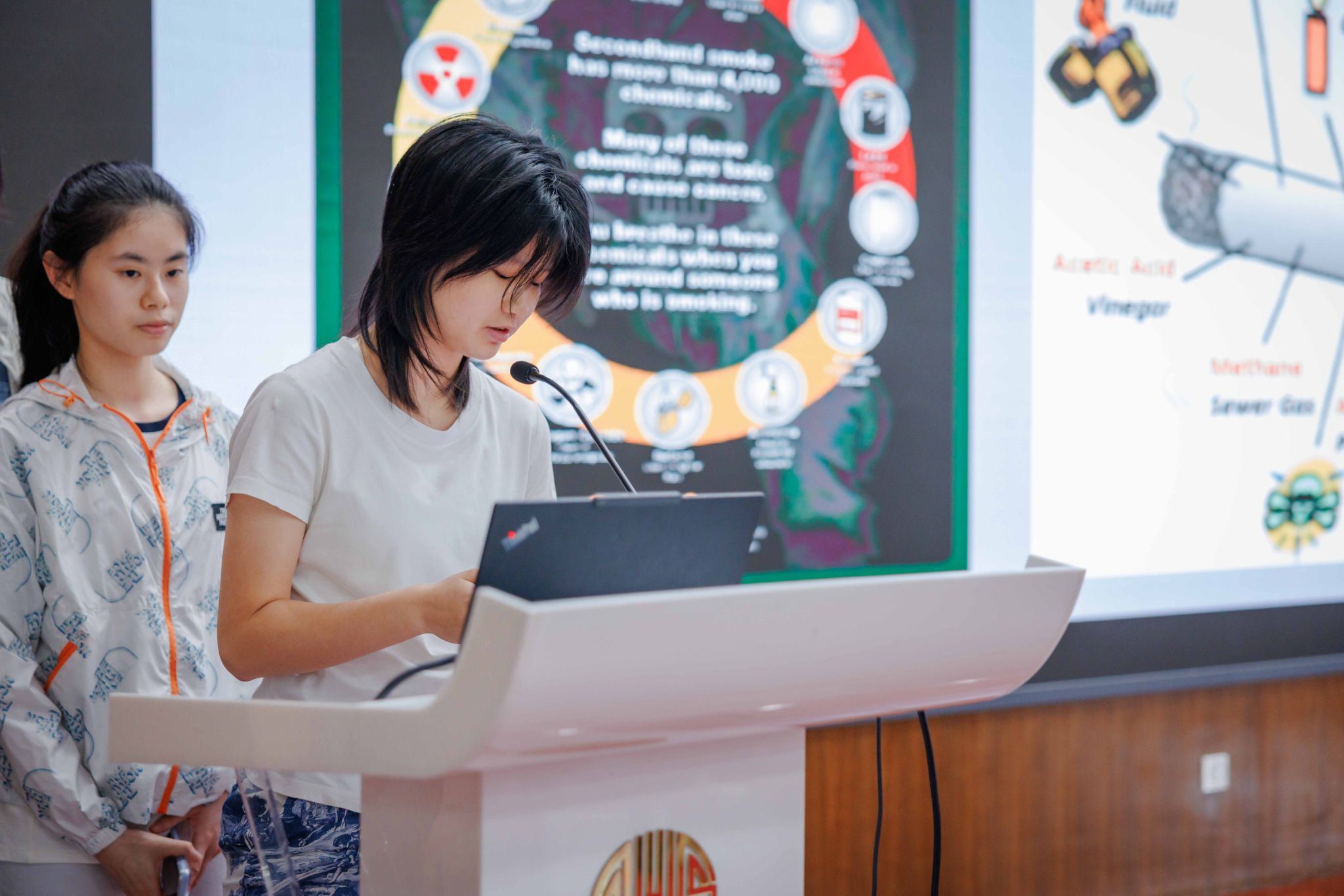 在分组评选结束后,师生们齐聚先棉堂辅楼礼堂,共同欣赏“优秀课题”小组的项目展示。有些小组围绕电动汽车、回收利用和食物浪费等热点话题展开研究。有些小组则指出了上海城市生活中的问题,例如二手烟、城市公园的维护、以及聋哑人士的不便。另一些小组通过提升市民对于流浪猫的保护意识、向外国人宣传中国的香道文化等途径,变相地提高了上海的生活质量。这些优秀的展示展现了学生们卓越的洞察力、创造力和执行力,也让在座师生通过他们的展示对大家生活的这座城市有了更加深入的了解。