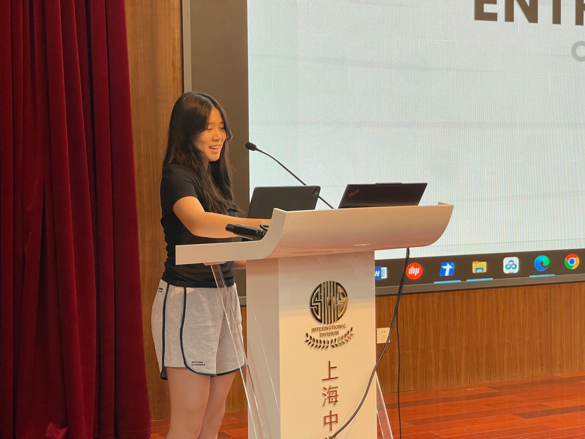 会上,来自十二年级八班的梁同学受邀发表了以"视角的力量"为主题的演讲。她提出,我们的学校实际上是一所"隐形的MBA学院"。当许多同学看到学业要求与截止日期时,梁同学却将小组作业类比为企业团队项目,与老师的探讨比作商业提案演示,并将突击测验视为商场中的突发应对训练。通过这种MBA视角重新诠释校园生活,她将她的学习经历赋予了更深刻的意义。最终,她告诉大家,当世界无法改变时,我们可以通过转变视角来为自己重塑世界,使自己的生活更加多彩。