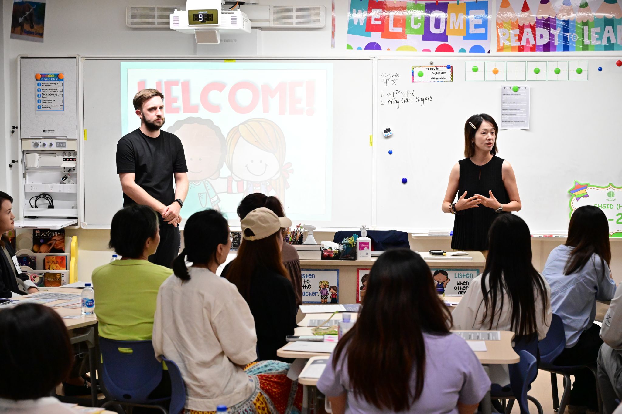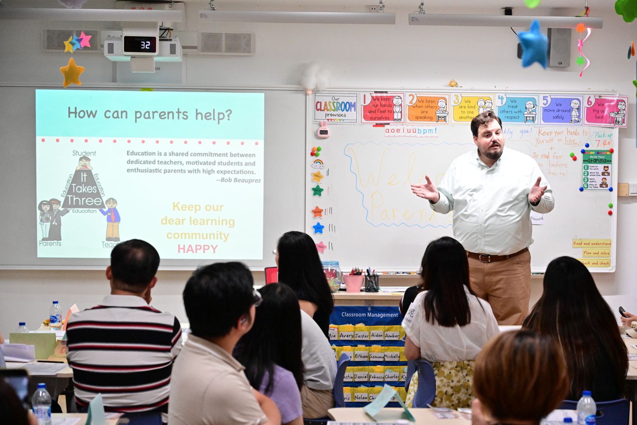 家长会在热情的气氛中正式开始。一年级盛敏老师首先发言,详细阐述了本学期对学生的学业要求与行为规范。她介绍了学校丰富的实践活动与文化课程,特别强调了“个人成长课程”的重要性,以及学校对学生全面发展的坚定承诺。盛老师鼓励家长积极配合,共同为孩子未来的成长打下扎实基础。