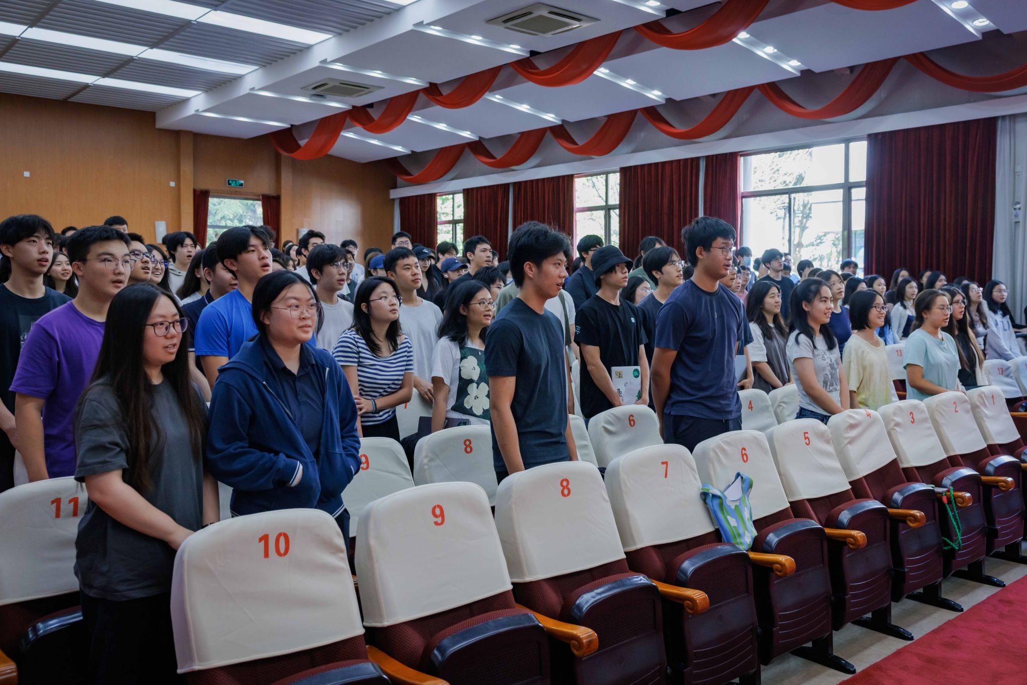 学生代表宣读完毕后,全体十二年级同学起立,在三位代表的带领下齐声宣誓,郑重承诺将在最后一个学年中恪守学术诚信政策与各类规定。