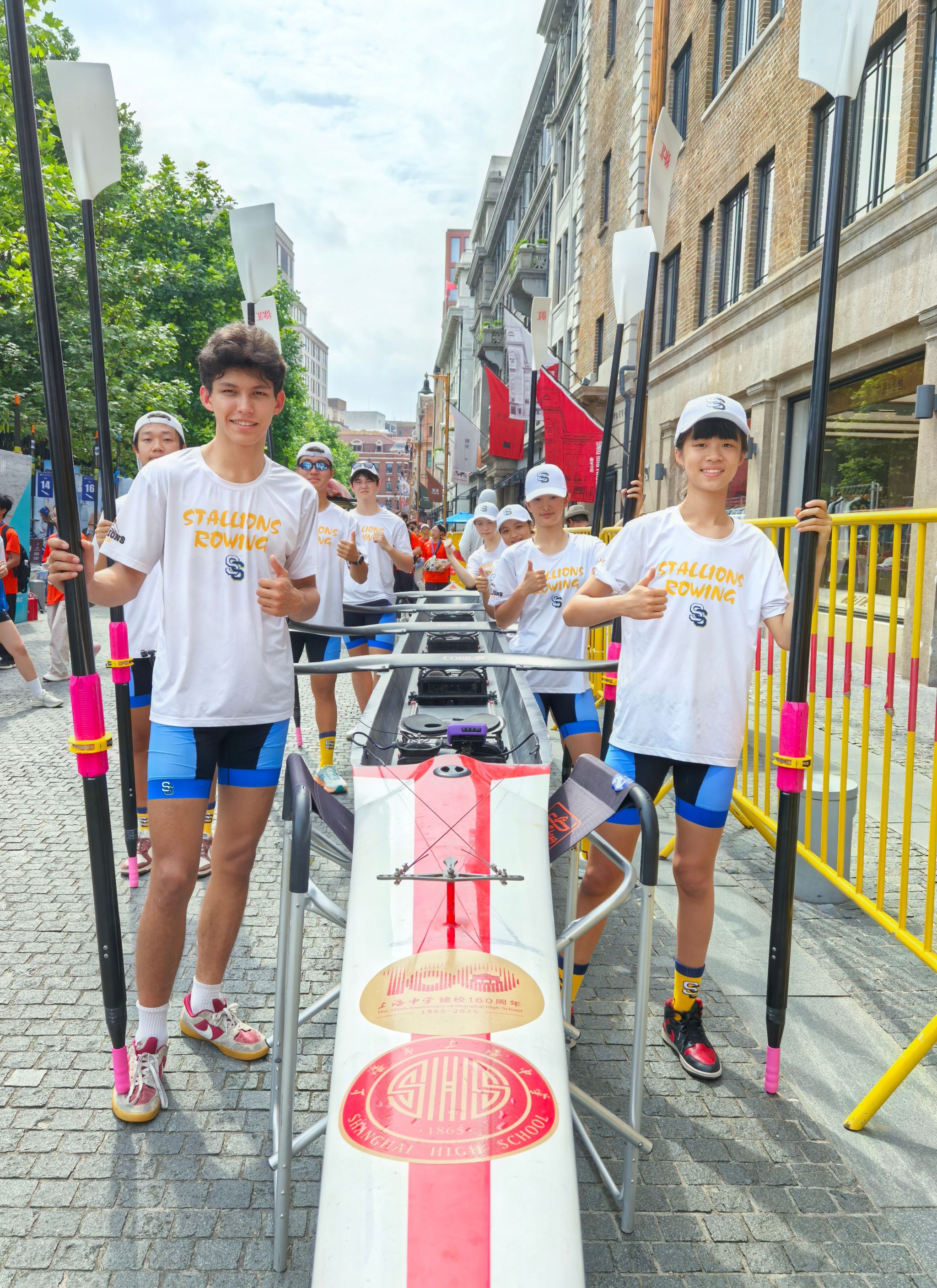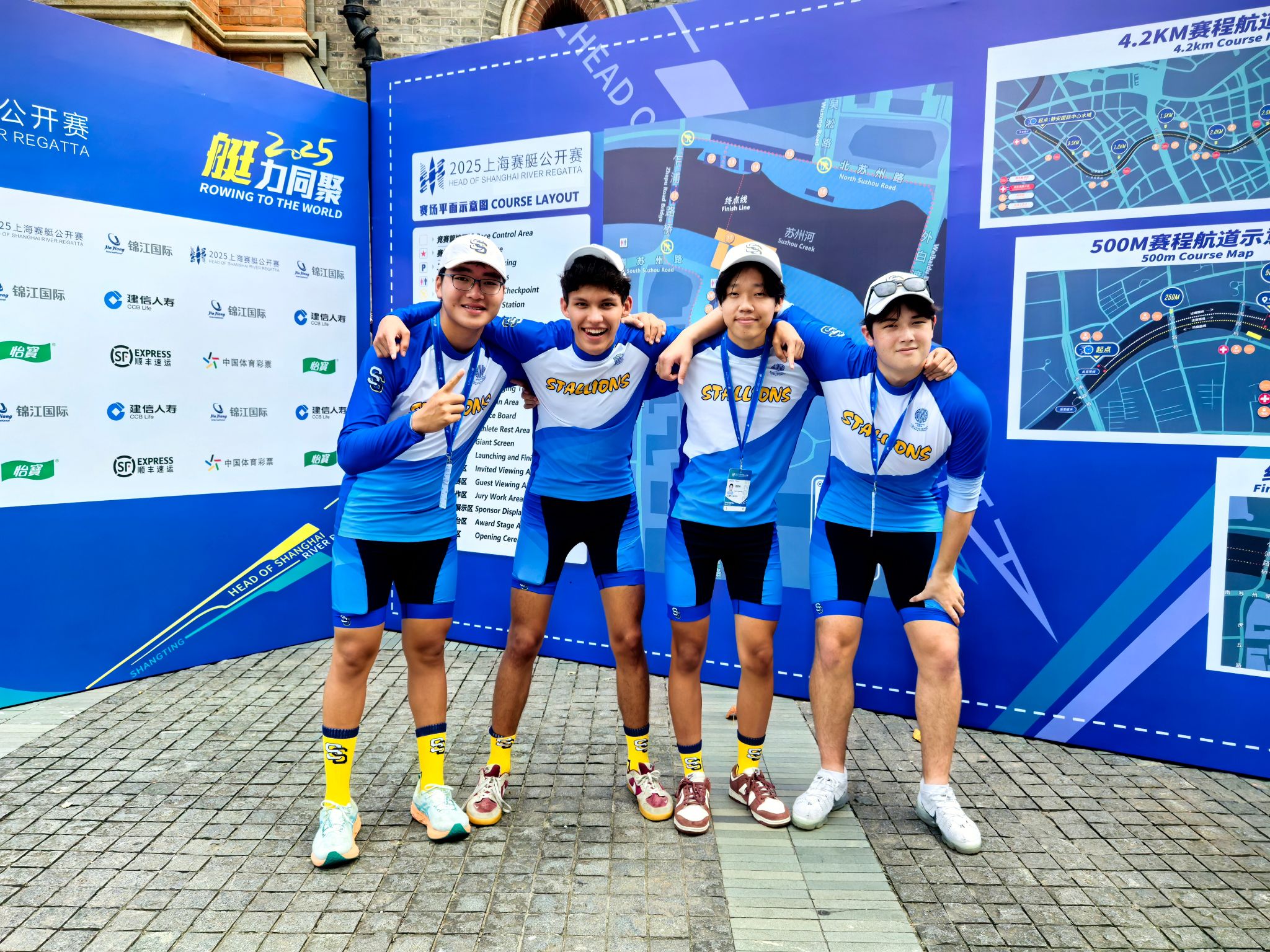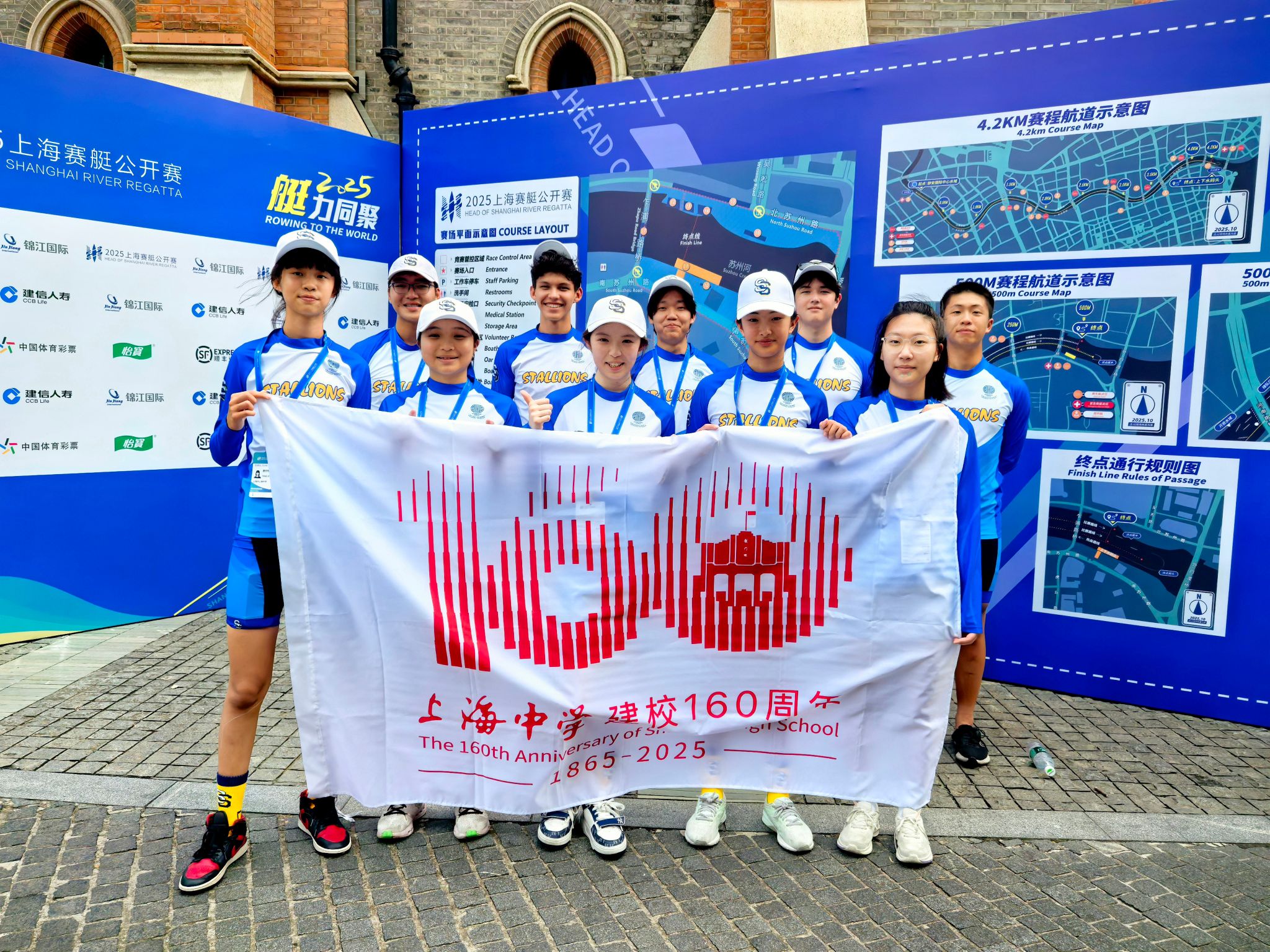 2025年10月2日,在上海的母亲河——苏州河上,上海中学国际部赛艇队在2025上海赛艇公开赛青少年组赛出了风采与佳绩。男子四人艇与女子四人艇在与不乏少体校注册运动员的专业强队的同场竞技中,以顽强意志与不俗的竞争力搏浪前行,用业余的臂膀,划出了专业的表现,分获各组的第五名。