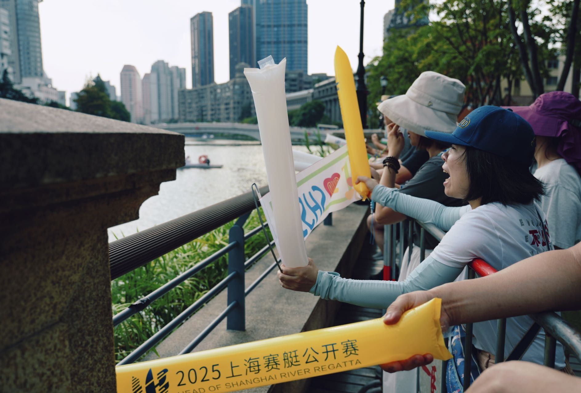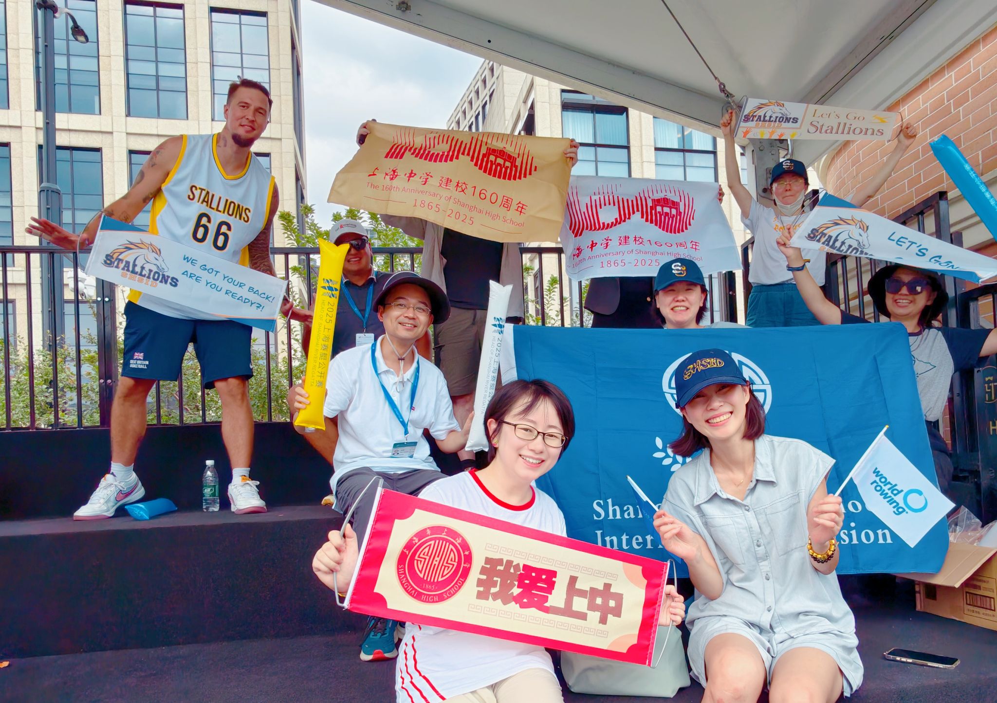 在岸边,“Stallions后援团”展开长幅助威海报——“上中少年,划破巨浪!”——齐声呐喊“一、二,上中加油!”,化作桨手们心中同步的第二节拍,完成了这场水上与岸边的动人呼应。