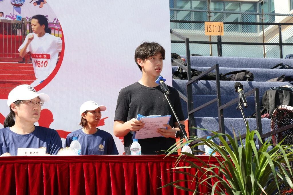 主席台上,上海中学校长冯志刚、国际部高中校长马峰、国际部初小校长刘炼等学校领导和部门负责人向大家挥手致意。随后,12年级的Zion同学代表运动员发言、体育组曲老师代表裁判员宣誓。师生共同托举一场阳光、健康、公平、公正的体育盛宴。