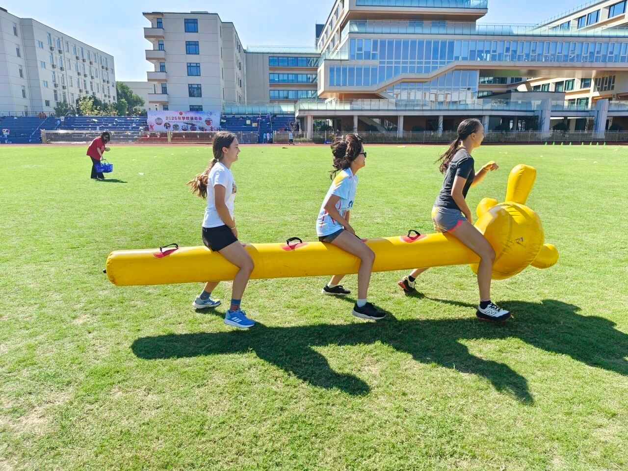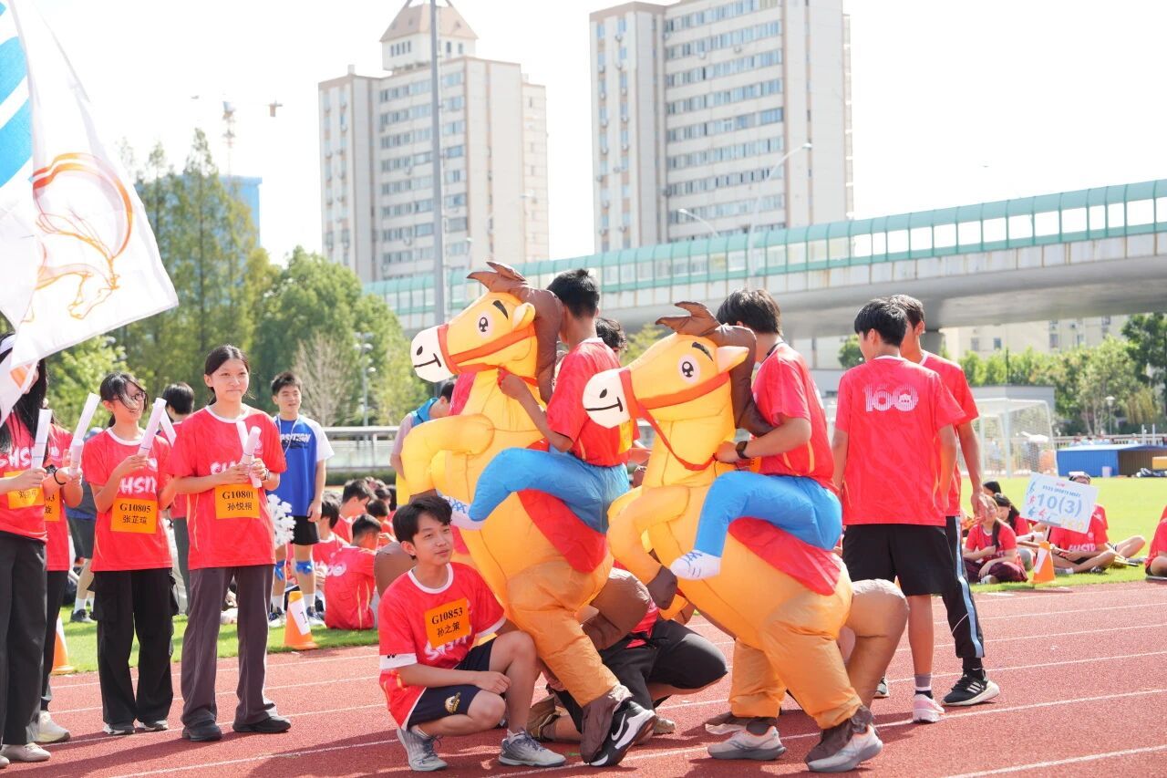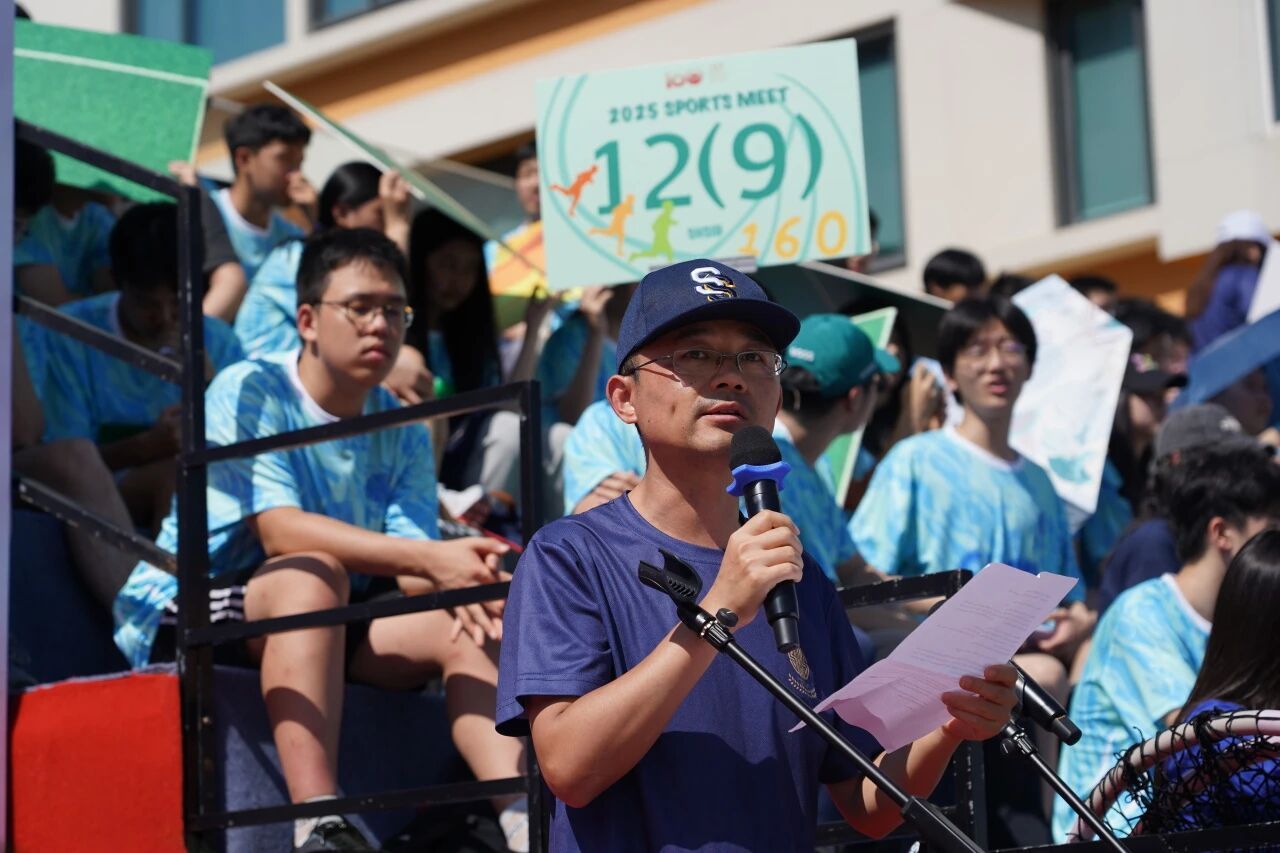 伴随着彩带绽放,全场情绪被推至高潮,掌声与呐喊回荡操场。随后,上海中学国际部高中段校长马峰老师登台致辞。他说,运动教会我们宝贵的道理——成功并非唾手可得,而是通过自律、团队合作和坚韧不拔的精神赢得的。他还提到,在我们庆祝辉煌的过去之际,让我们也一起努力奔向未来。驱使我们奔跑得更快、志存高远的能量,也将引领上海中学国际部获得更大的成就。随后,他宣布运动会正式开幕。