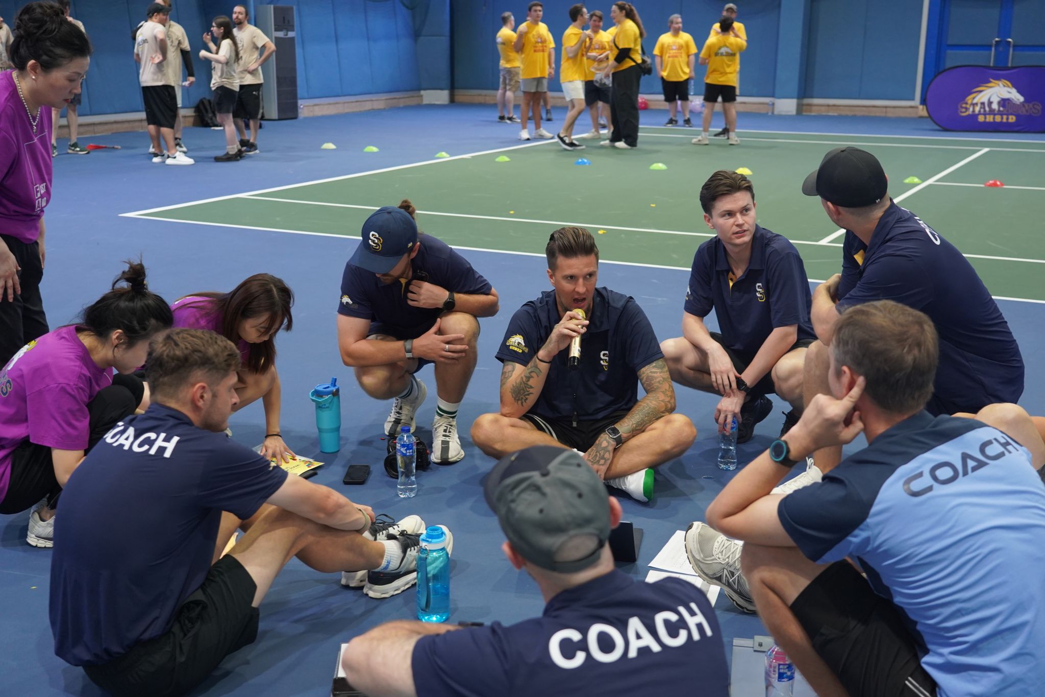活动当天,在高中校长助理、外教办协调员胡波老师的动员下,所有外教集聚于室内网球馆,在体育组外教团队的指引下,正式开启了一系列充满趣味与挑战的团队项目。活动包括 Galaxy Jumpers(反应挑战)、Spin Doctor(专注比拼)、Defying Gravity(协调闯关)、Reaction Lights(速度测试)、Basketball Shooting(投篮赛)以及 Cone Flip(手眼协作)等环节。现场氛围热烈而融洽,欢声笑语贯穿始终。外教们说道:“有人滑倒,有人相撞,也有人尝试得不尽完美,但无论成功或失败,我们都一起面对。无论胜负,我们始终在一起。” “我们以同事的身份、合作伙伴而来,或许原本只是点头之交,却以队友、盟友,甚至挚友的身份离开。”比赛过程中,外教们不仅展现了顽强的拼搏精神,也在协作与互助中收获了满满的友谊与成就感。