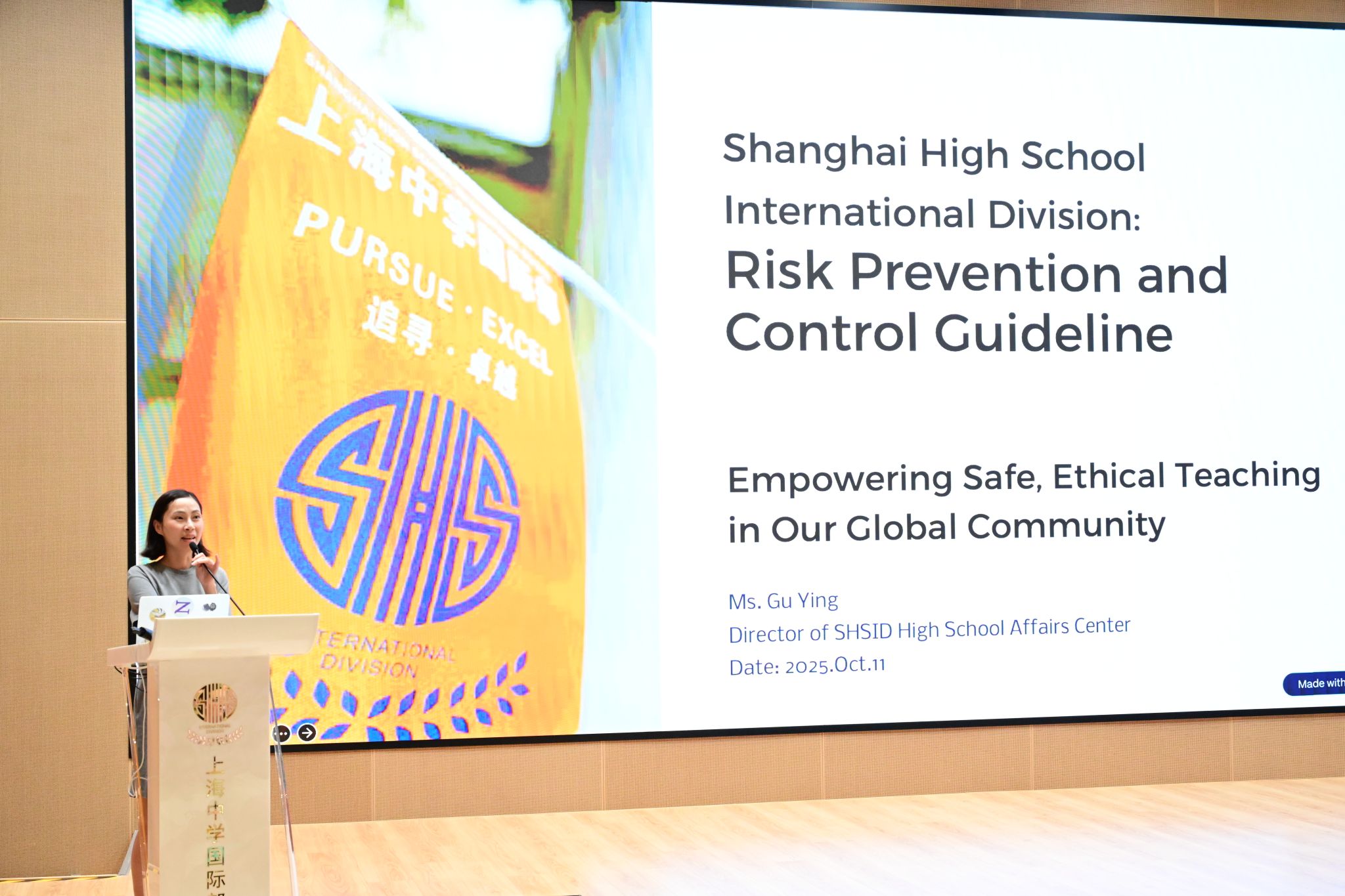 报告主题为《风险防控指南——赋能全球教育社区中的安全、道德教学》。当下,为加强学校管理、规范工作流程、有效预防风险,学校设定了明确目标:促进公平、保障安全、营造积极向上的校园文化。这一目标贯穿于财务、教学、交流活动、学生活动、招生工作等各个方面。