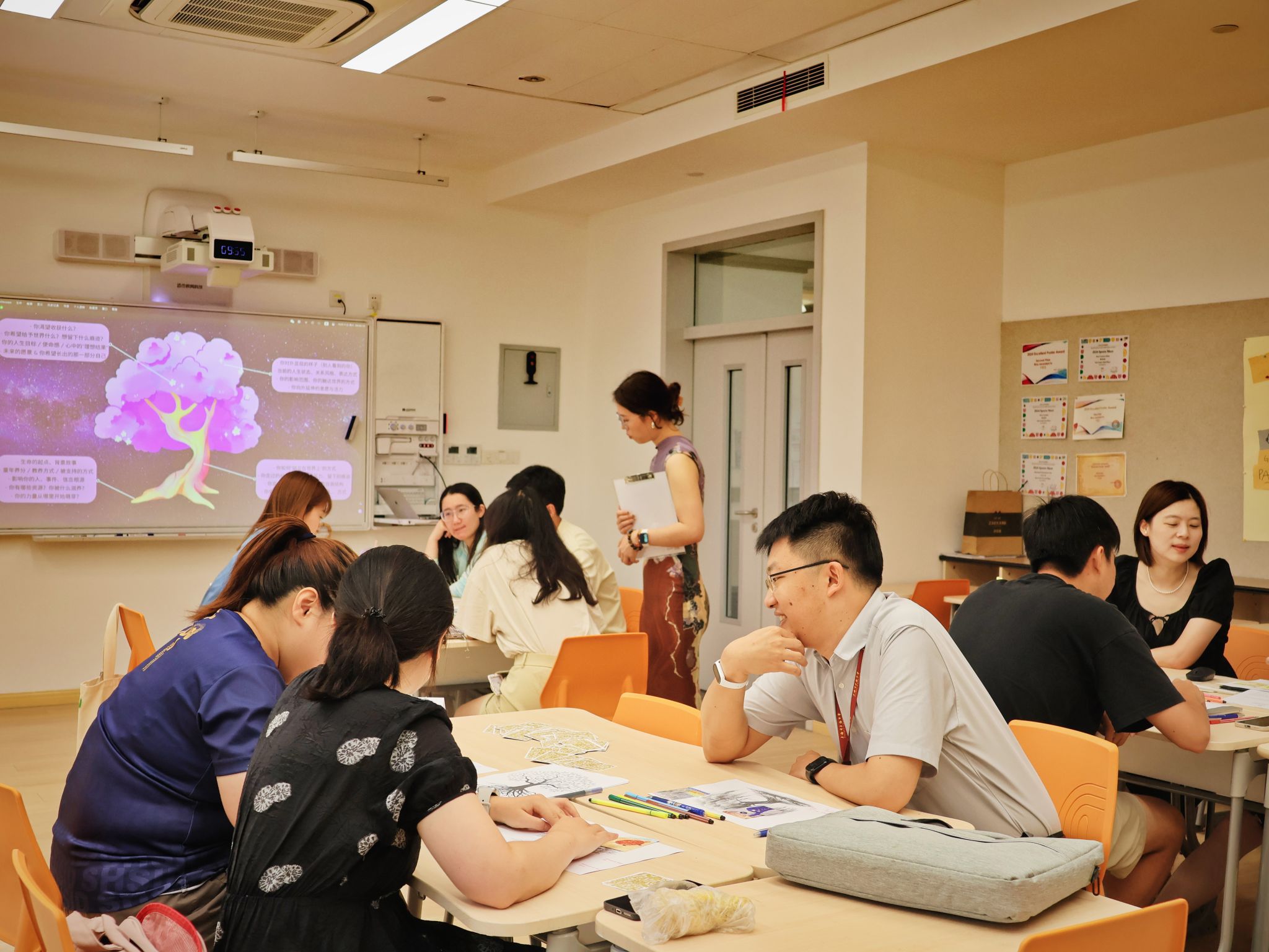 上半场的“工具箱”里,装的是提升自我修养的工具。教师们分流至六大工作坊,为身心充电续航:有的选择“正念与艺术疗愈”和“心灵对话卡”,学习情绪觉察与疏导,安顿内心;有的投身“创意手作”与“形体拉伸”,通过手工的专注与身体的舒展来释放压力、恢复精力;还有的则在“校园四季主题拍摄”与“课题申报指导”中,汲取美学灵感与科研方法,激发专业发展的新热情。