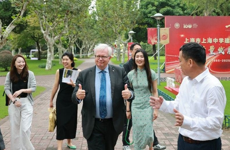 此次到访上中,教授一行还参观了学校历史建筑龙门楼、校史博物馆及创新实验室,他对学校的办学成果和学术氛围给予高度评价。