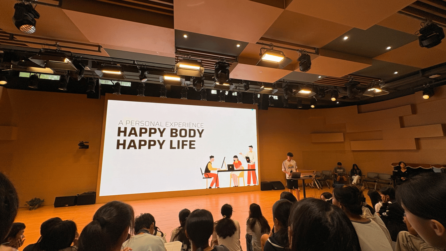 首先,3班的Steven围绕 “健康身体,快乐生活” 展开分享。他结合自身阑尾炎手术经历,讲述术后康复过程与感悟,强调规律作息、合理饮食的重要性,分享积极面对伤病的心态,提醒同学们重视身体、避免健康风险;Steven还提及自己创办的 Active-Health 社团的本学期午餐时段健康讲座计划,同时他呼吁大家支持当日校篮球队 varsity 主场比赛。
