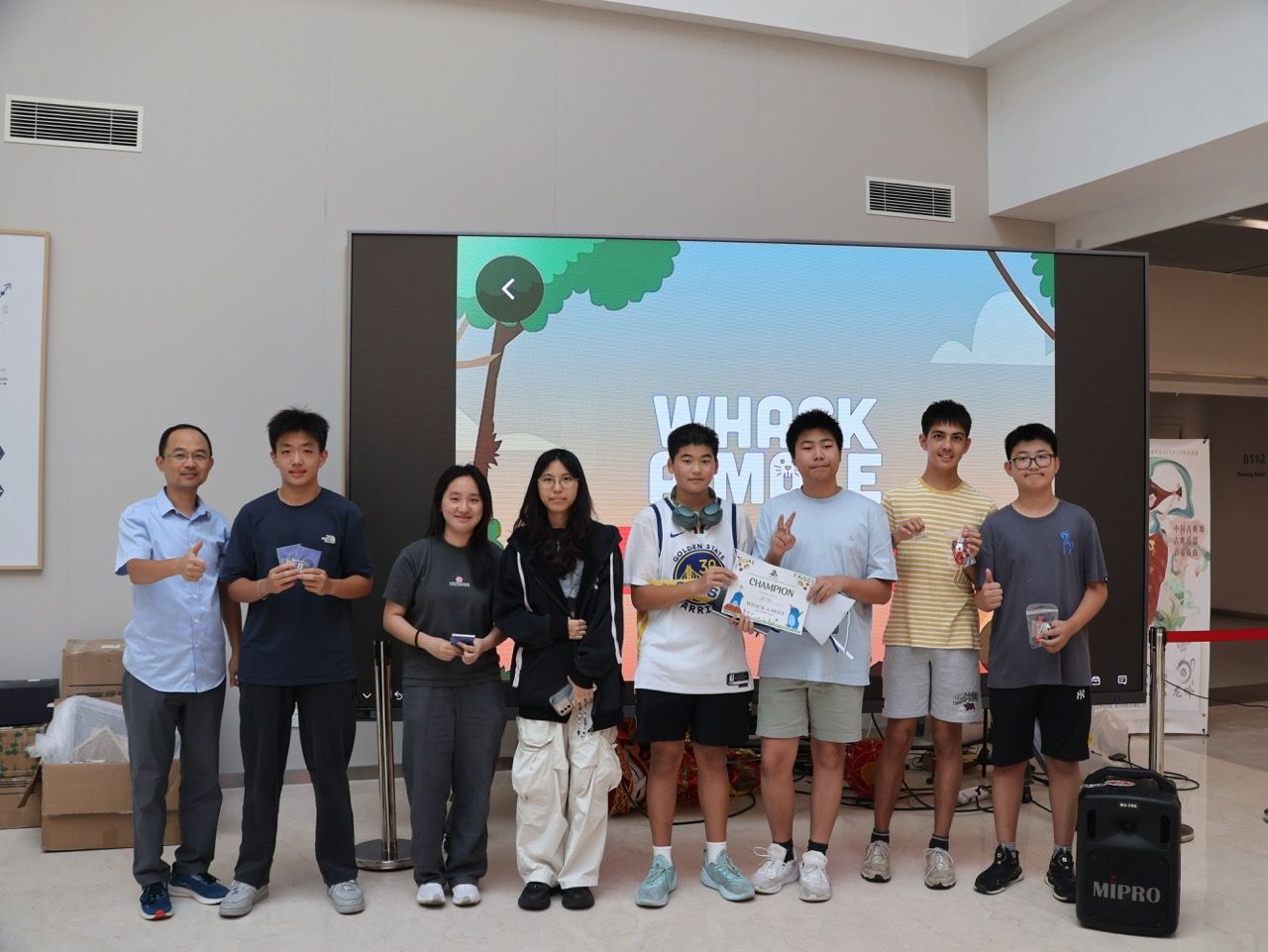 本次活动首次引入基于AI的全身动作追踪项目,参赛学生通过肢体动作操控屏幕角色,在Laser Dodge(激光闪避)、Galaxy Jumpers(银河跳跃者)和 Whack-a-Mole(打地鼠)三项项目中展开比拼。此类设计不仅将体育锻炼转化为趣味挑战,也有效提升了参与者的反应速度、协调性与弹跳力,为传统运动增添了科技与互动的新体验。