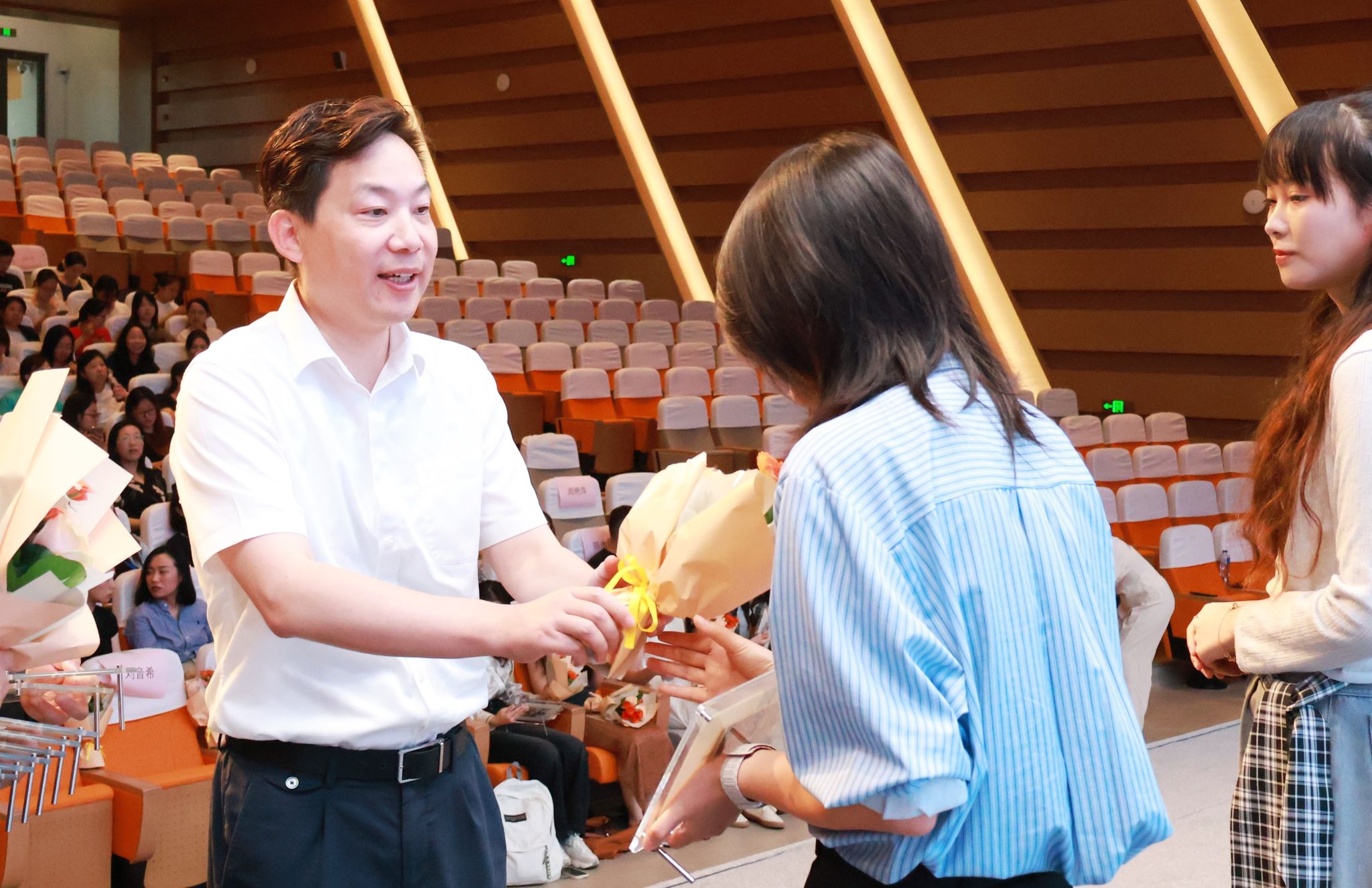 首先举行的是2003年新教师满师仪式。经过两年的师徒带教及新教师培训,又一批新教师顺利满师,成为更新的自我。刘炼校长给新教师们颁发了奖状和鲜花,祝贺新教师满师。新教师们向辛勤的带教师傅们献花,留下珍贵的师徒合影。新教师代表段晓倩老师,带教师傅代表康亮老师都进行了发言。提前满师的陈腾老师和带教师傅姚青老师也发表了情真意切的感言。