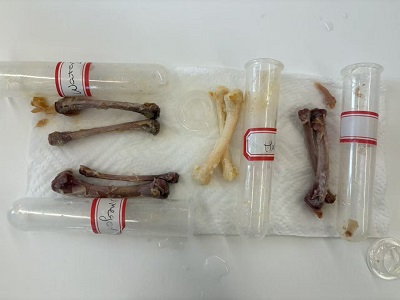 实验开始前,同学们结合课堂所学,针对水、双氧水、白醋及自选液体(如柠檬汁、碳酸饮料)对鸡骨强度的影响提出大胆假设,并尝试推测其中钙元素的变化规律。实验过程中,大家严格遵循操作规范,将鸡骨分别浸入不同液体,分阶段观察并记录骨骼硬度的变化。在协作交流中,他们敏锐捕捉实验现象,共同体验科学探究的乐趣。