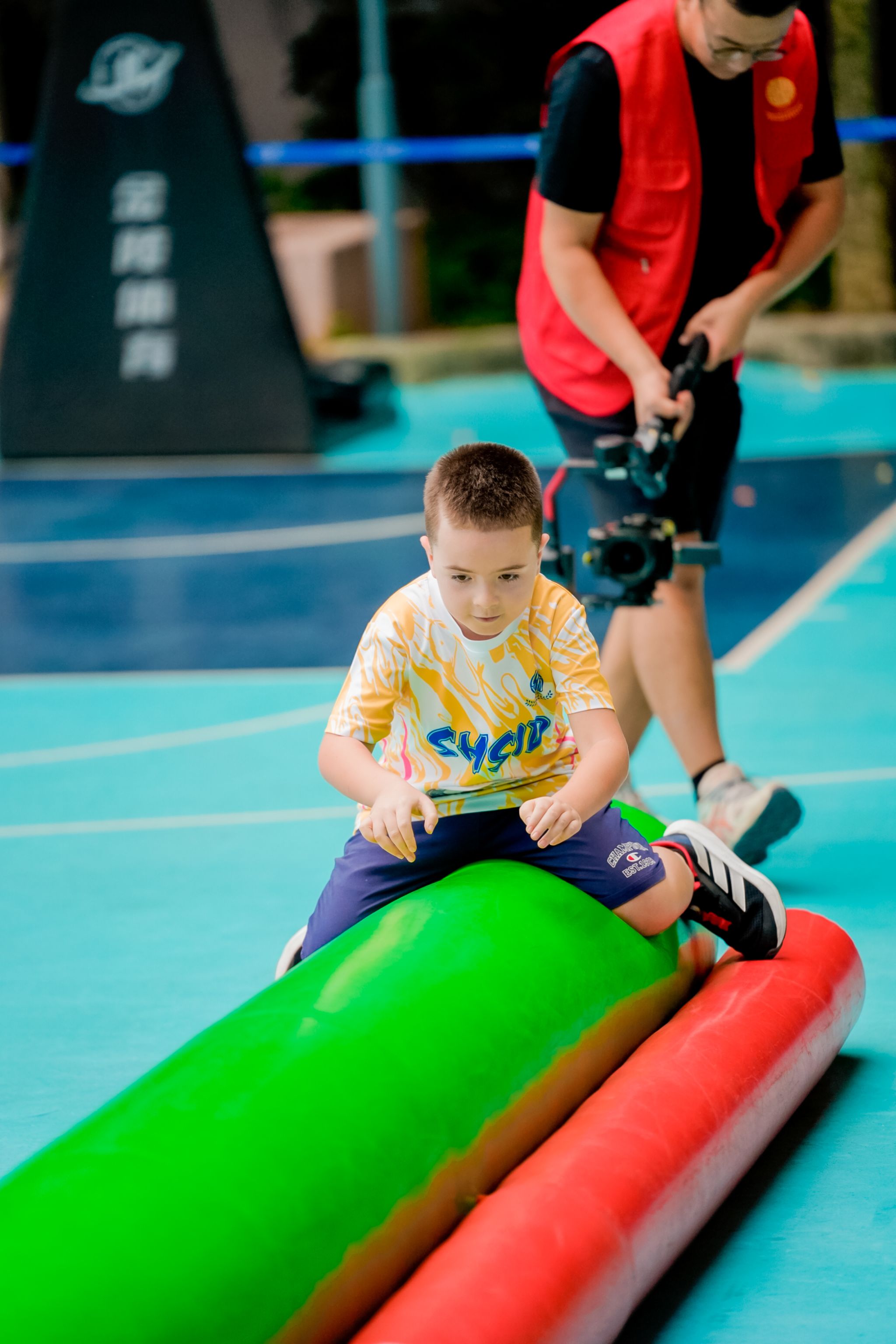 “大排球”比赛颇具趣味。小朋友们团结协作,努力托起直径两米的充气排球,试图将巨大的充气排球击打过网。孩子们有的飞奔救球,有的组织起有效的进攻,不放过每一次得分机会。一个个小小的身影在巨大的排球衬托下显得格外可爱,现场不断爆发出阵阵欢呼。