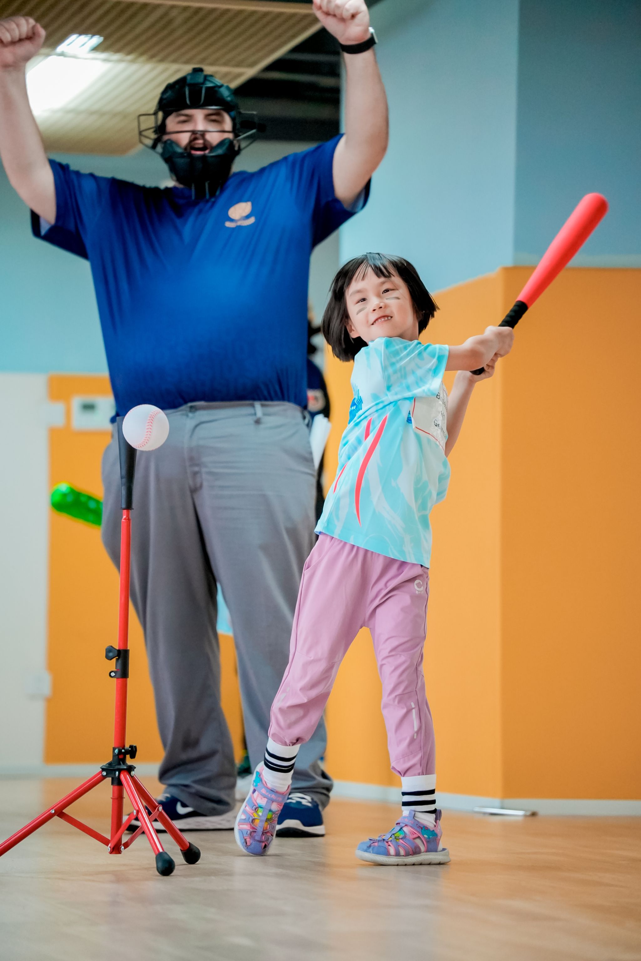 “全垒打”区域不时传来惊叹声,当小朋友用力挥棒将球击向远方时,队伍总会响起热烈的掌声。"NFL四分卫打靶练习"则考验着孩子们的精准度,他们认真瞄准,用力投球,每当击中目标数字时,都会开心地跳起来。