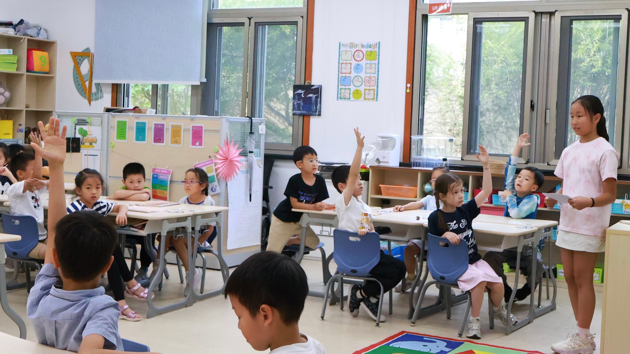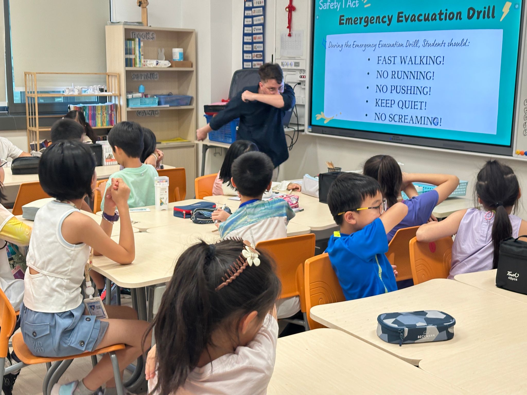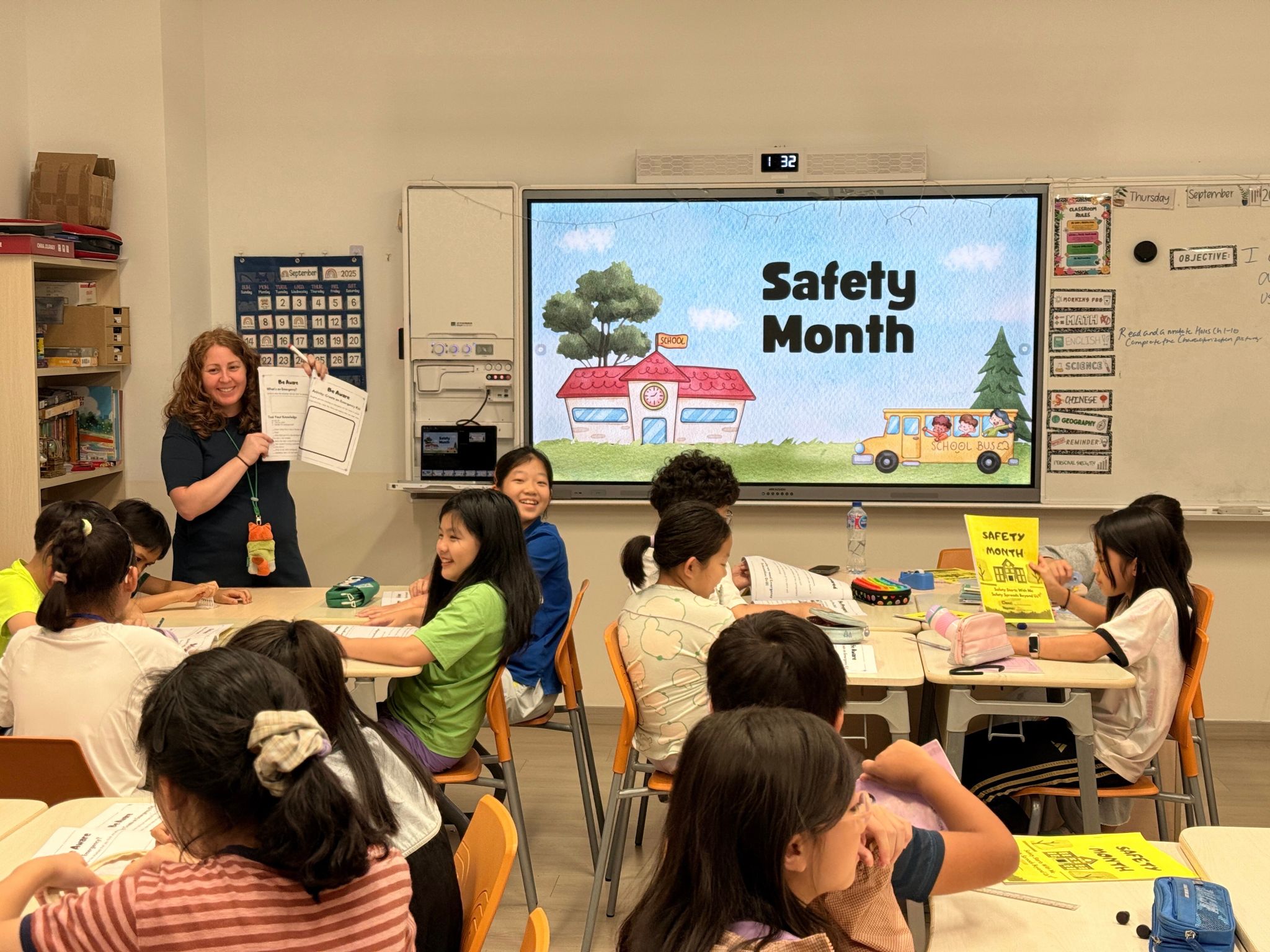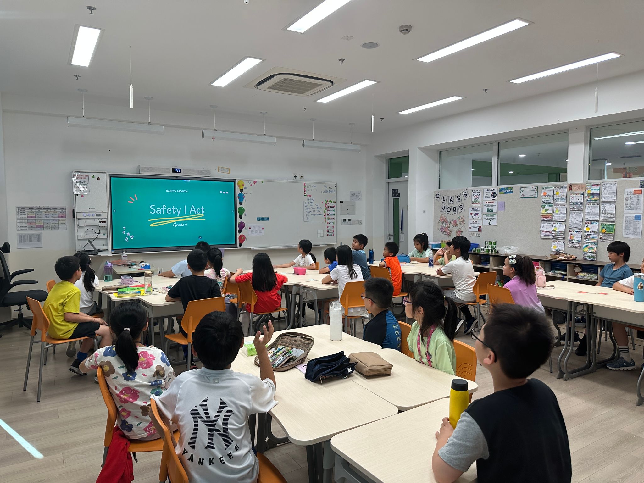 本周最令人印象深刻的,是五年级同学的安全宣讲活动。各班ASB作为代表,提前制定了详细计划,准备了安全知识 PPT、趣味问答题目等材料,走进一年级教室,ASB成员们用生动易懂的语言,讲解校园安全的重点内容。在安全知识小问答环节,一年级的同学们更是积极举手回答,现场氛围热烈非凡。通过此次活动,五年级的同学们不仅深化了自身对安全知识的理解,更展现了小学高年级同学的责任与担当。