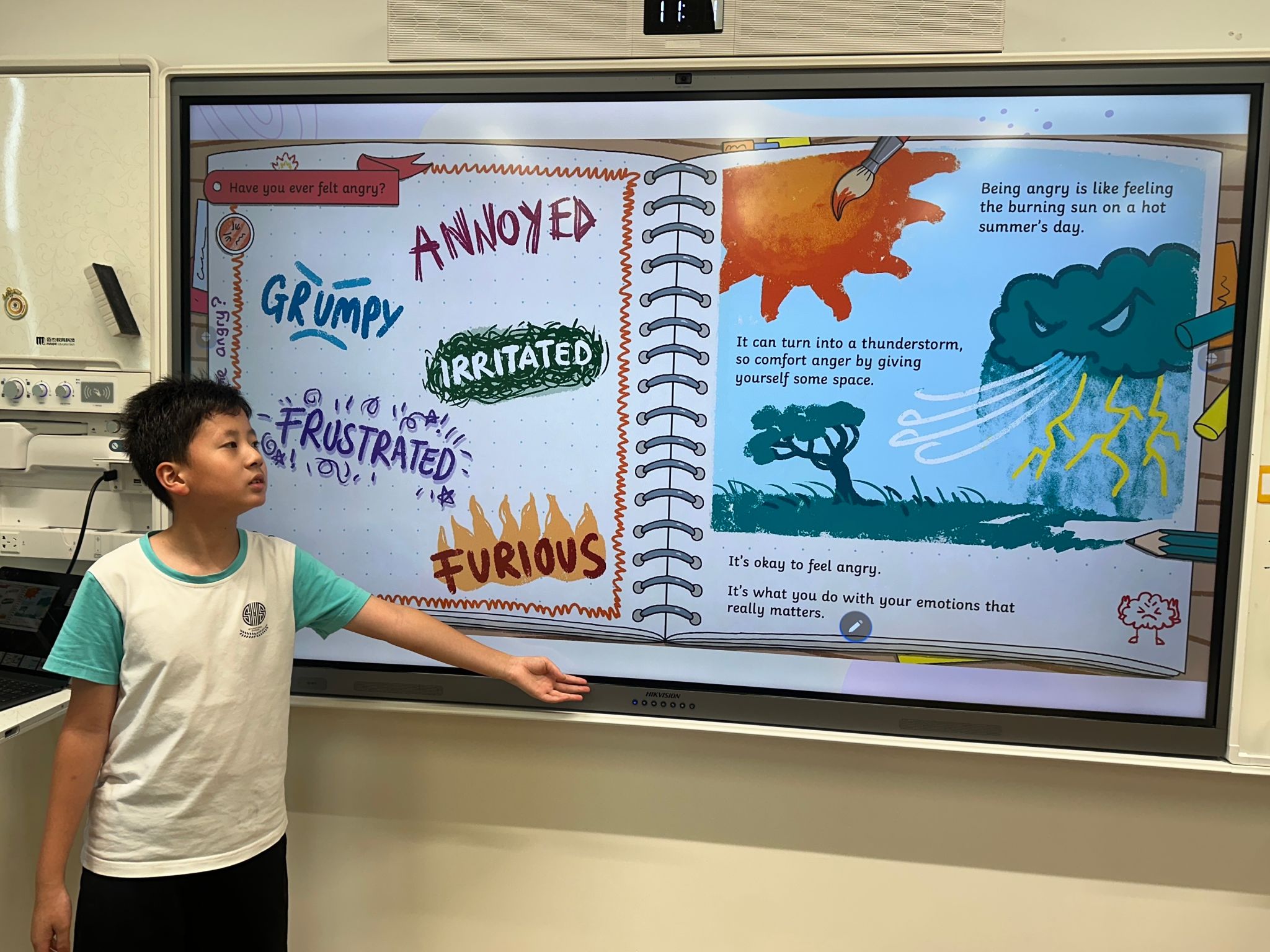 课程首周以“心理安全”为核心,旨在帮助刚升入五年级的同学们更好地适应新阶段的学习与生活。老师们通过生动的案例引入了“心理健康”话题,让同学们明白了情绪管理是个人安全的重要组成部分。随后,大家共同开展了绘本阅读活动。鲜活的画面和温暖的故事,使得抽象的情绪变得可感可知,同学们也开始学会与情绪对话。
