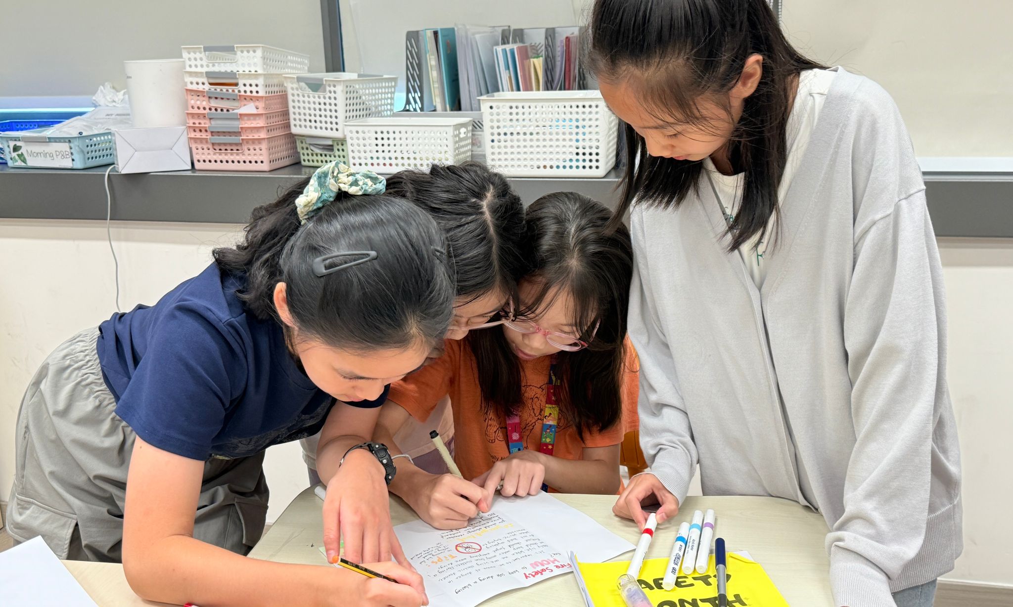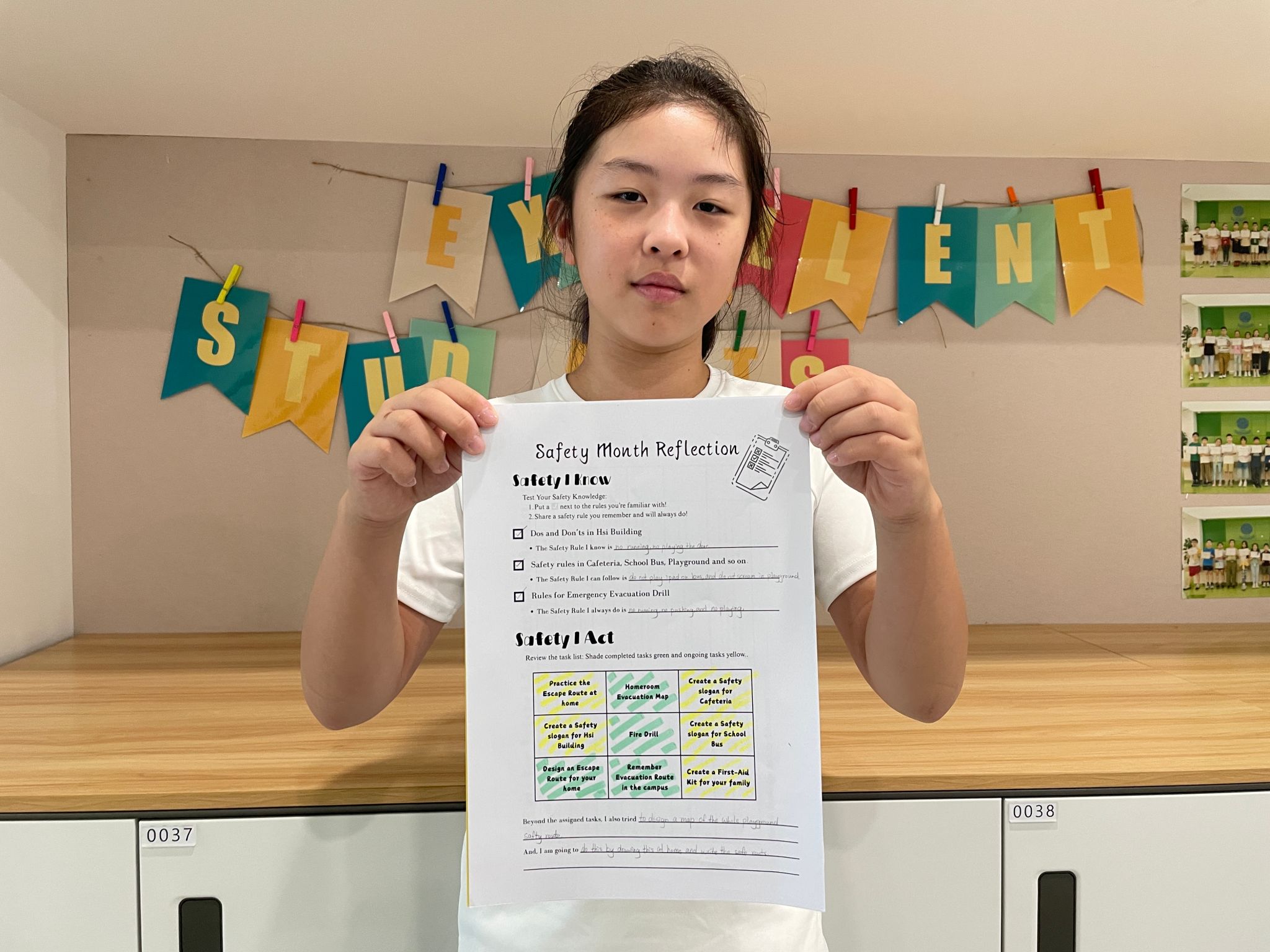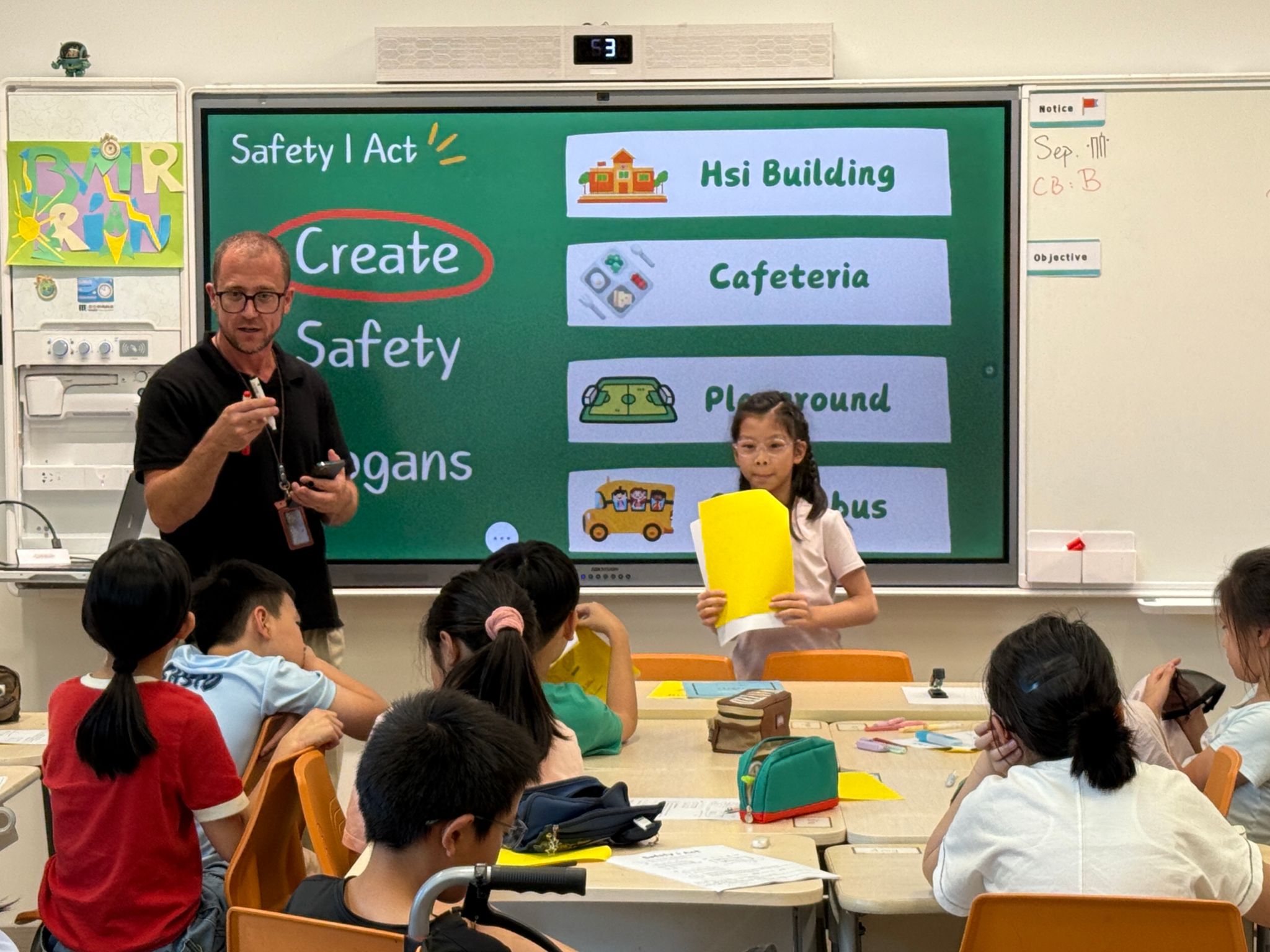 在为期一个月的安全主题课程中,四年级同学系统学习了安全知识,并通过应急演练、情景模拟将知识付诸实践。他们还化身“校园安全设计师”,为学校的安全标语出谋划策。在整个过程中,同学们将安全意识内化于心、外化于行,收获满满。