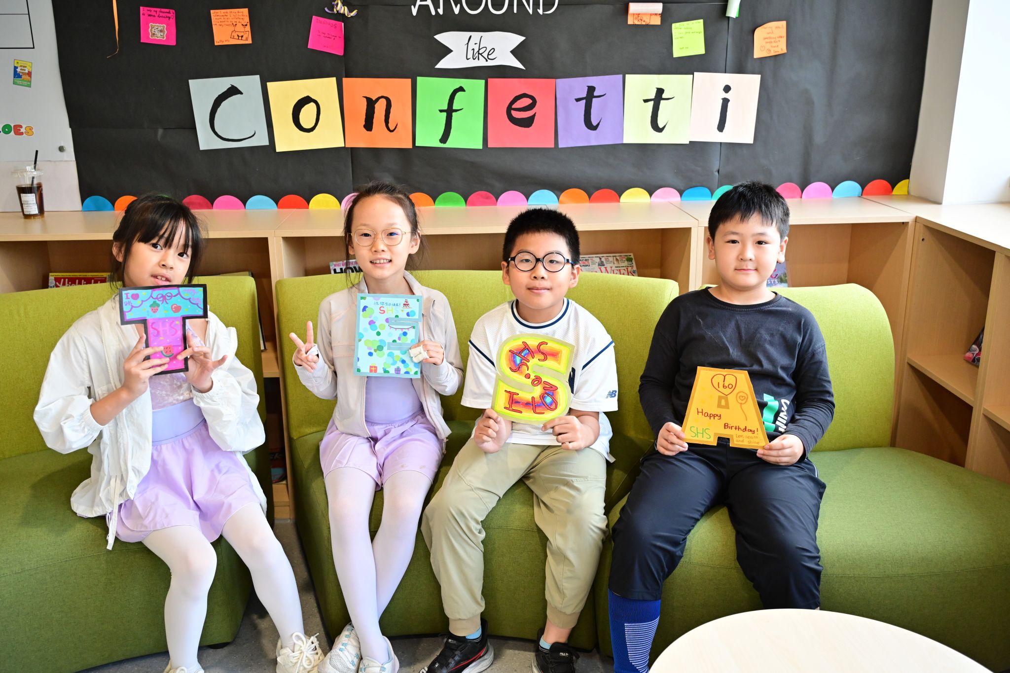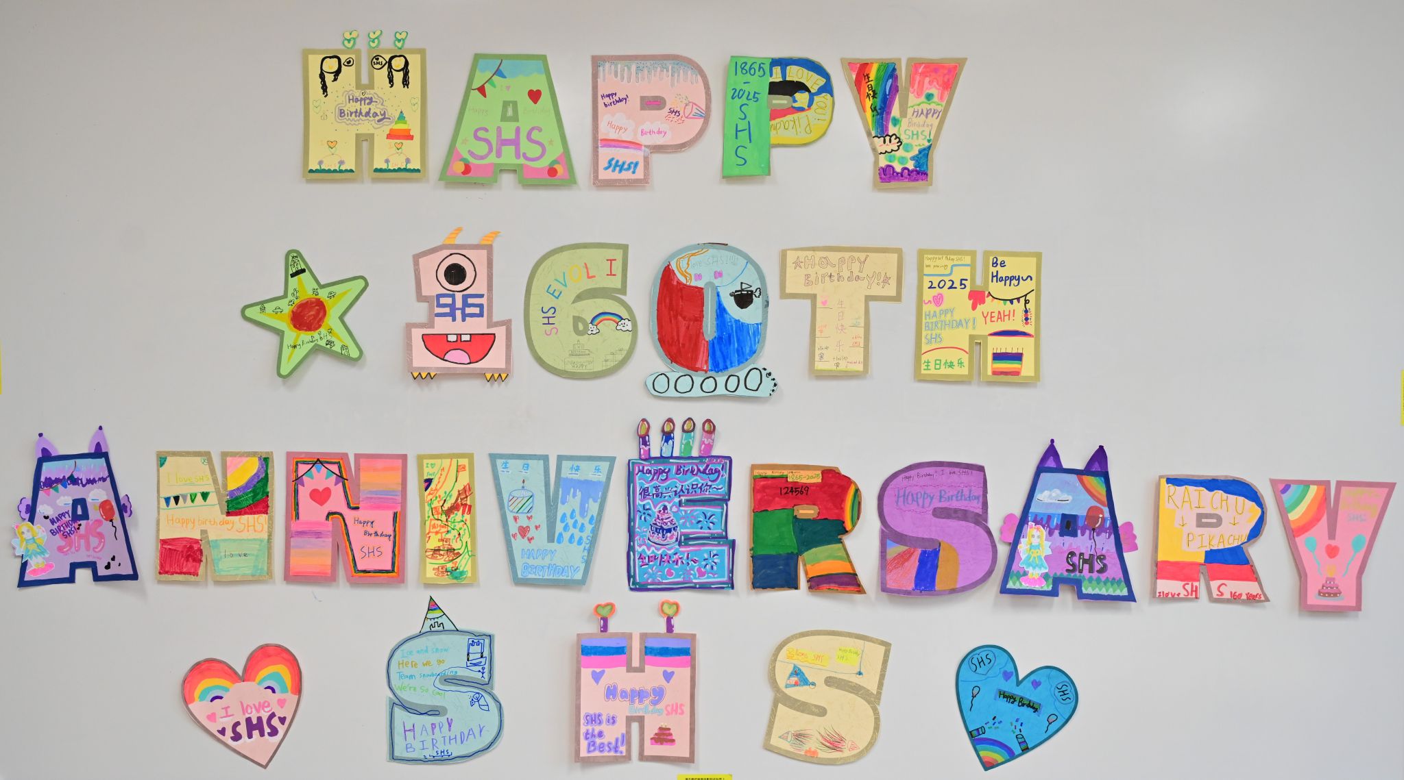 为了纪念这个特殊的里程碑,国际部的学生们参与了一项别开生面的艺术创作活动。他们为25个中空字母“Happy 160th Anniversary, SHS❤️”精心填色,并在其中写下了对上海中学最美好的祝愿。从五彩斑斓的创意涂鸦,到情真意切的文字祝福,每一个字母都承载着同学们对学校深深的爱与自豪。完成创作后,学生们手持这些充满祝福的字母,齐心协力摆拍合影,将这份独特的心意定格成永恒的纪念。