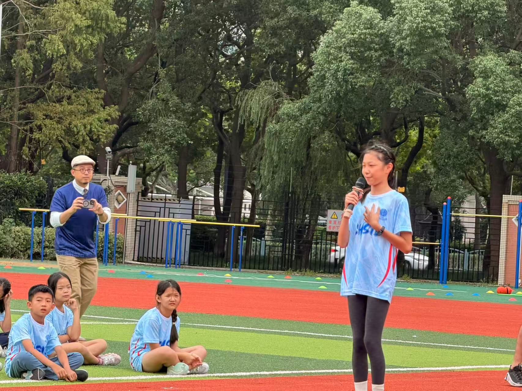 随后,来自5-1班的Carol同学作为学生代表发表了热情洋溢的讲话。她用生动幽默的语言讲述了自己与运动的故事,鼓励同学们勇敢尝试、积极参与,在每一次奔跑与欢笑中做最好的自己。
