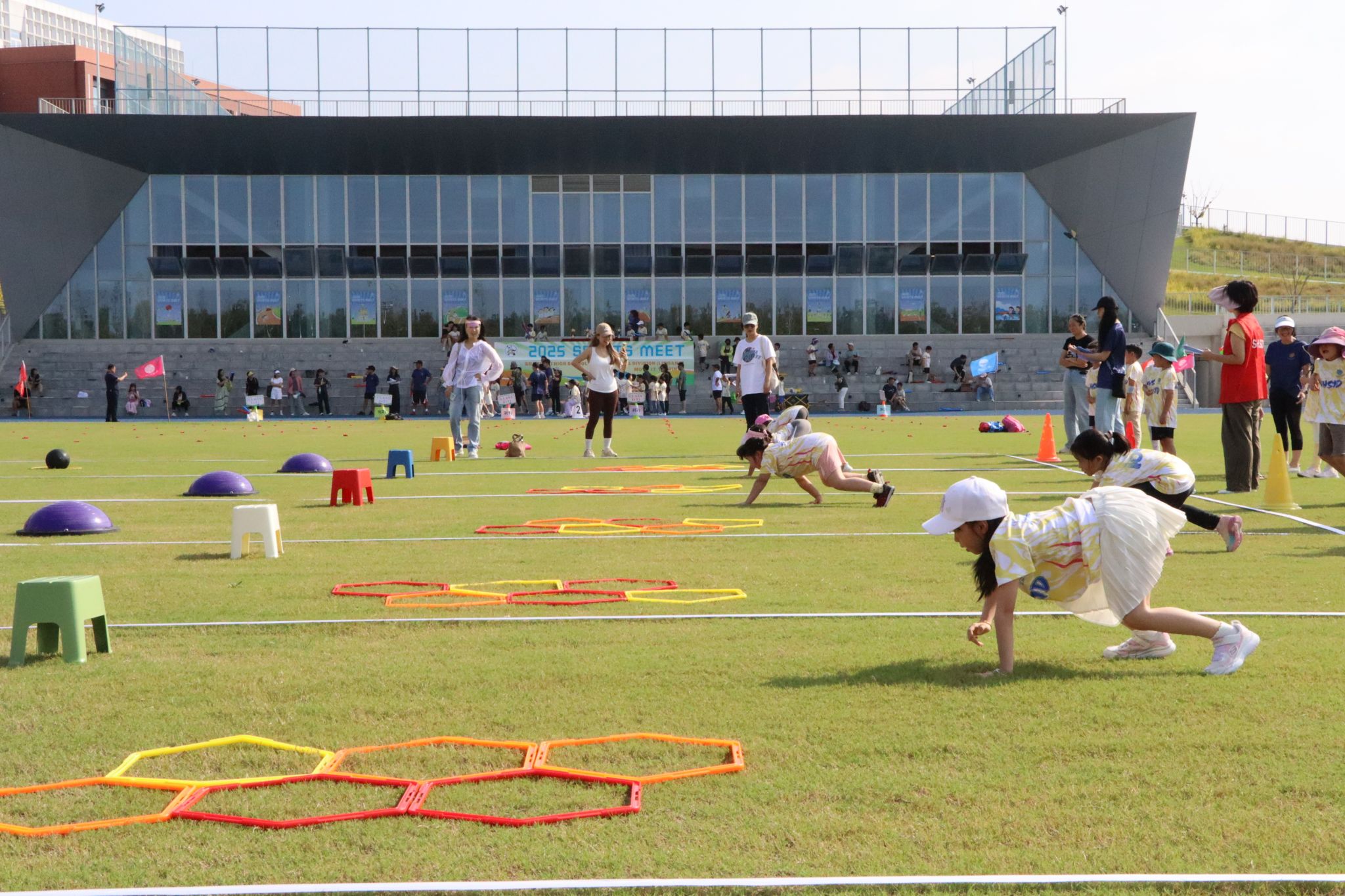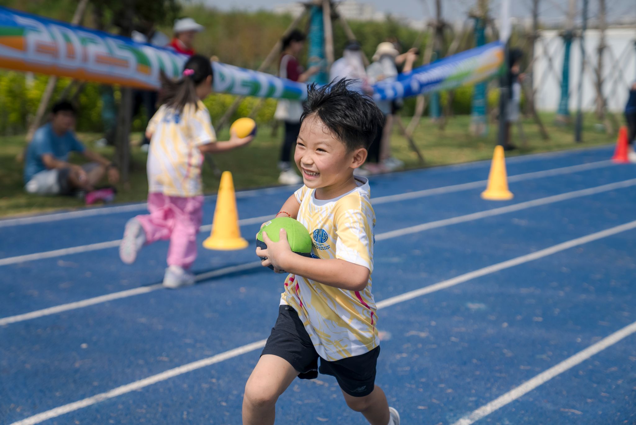 随着一声哨响,各项比赛正式开始,运动场瞬间成为“竞技场”。个人项目中,50 米跑道上的孩子们如离弦之 箭;“全能挑战”中,孩子们依次完成爬行、蹲起、持重球往返、弹力球跳跃与敏捷圈穿越,争分夺秒尽显韧劲。