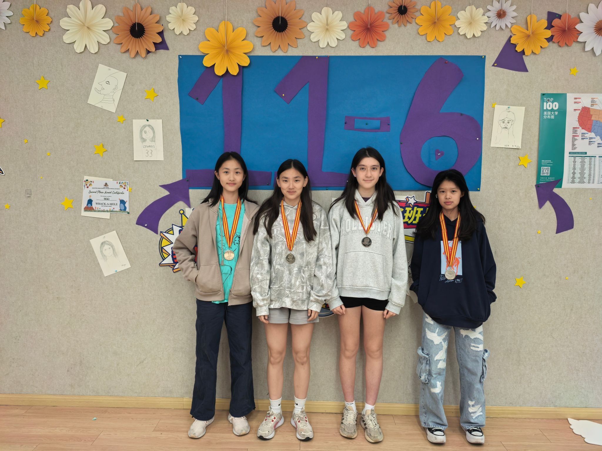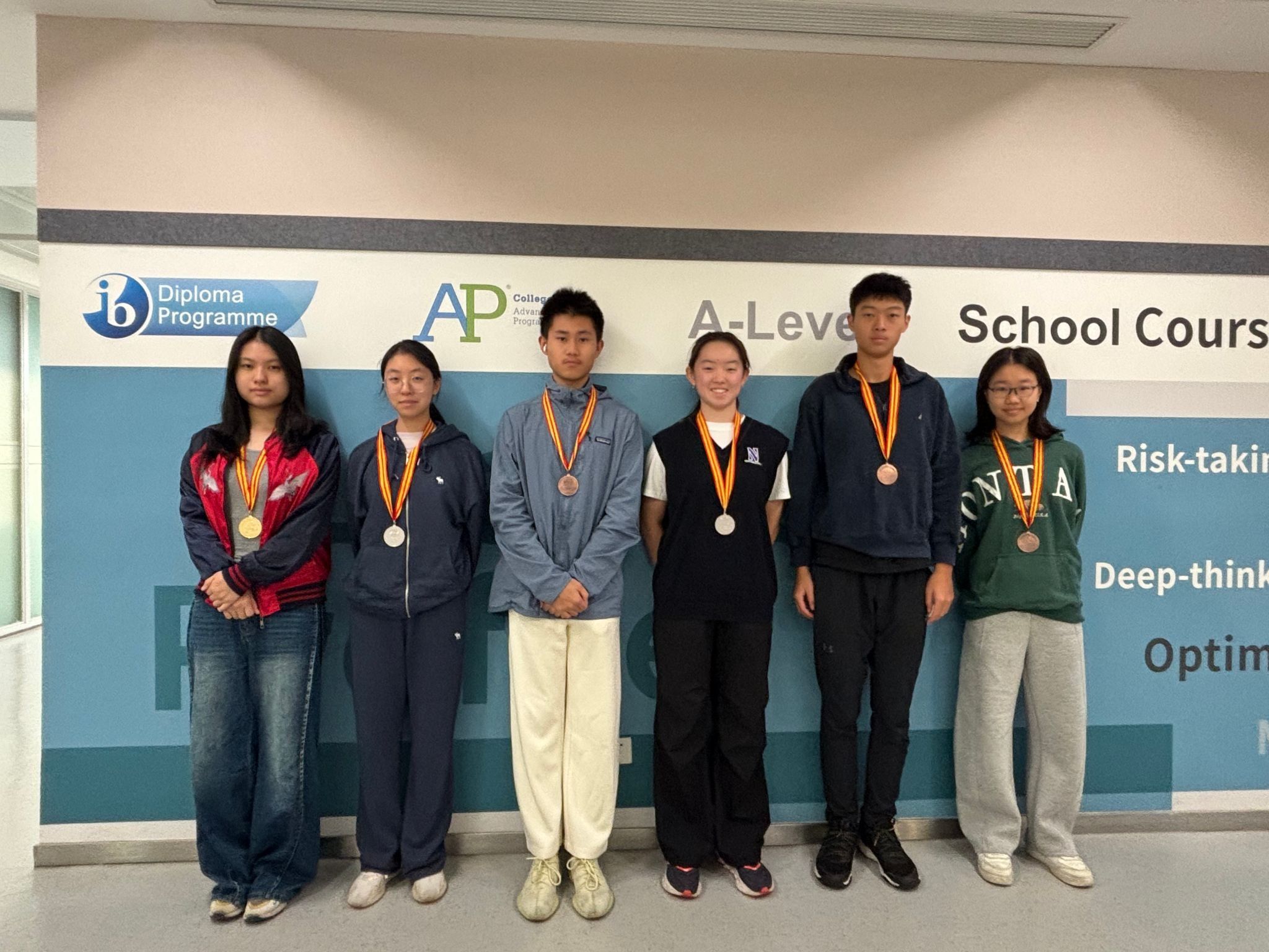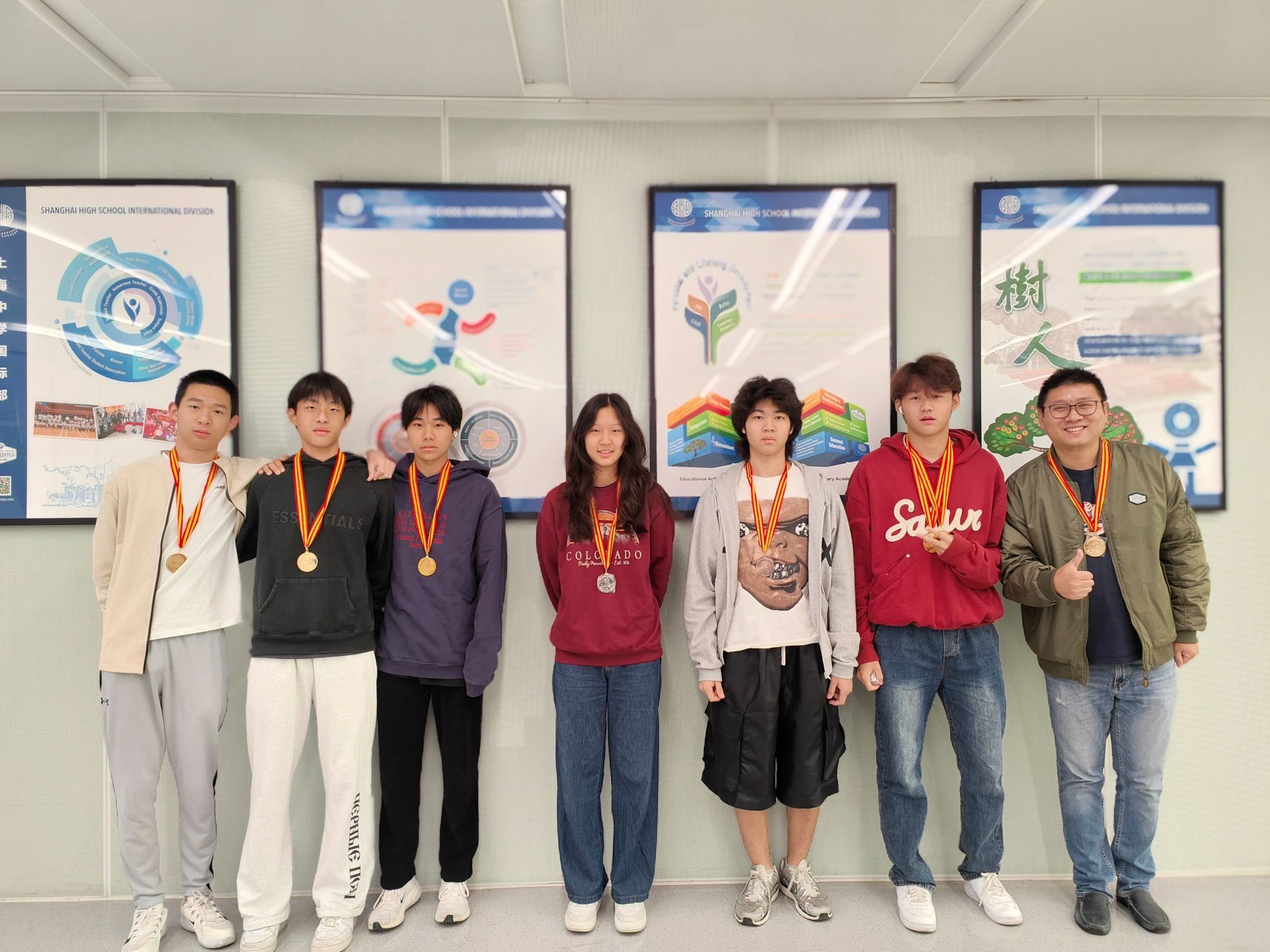 当获奖名单一一被念出时,掌声与欢呼在教室间回荡,同学们纷纷为身边的朋友送上祝贺。获奖者们则饱含笑容举起闪闪发亮的奖牌合影留念。
