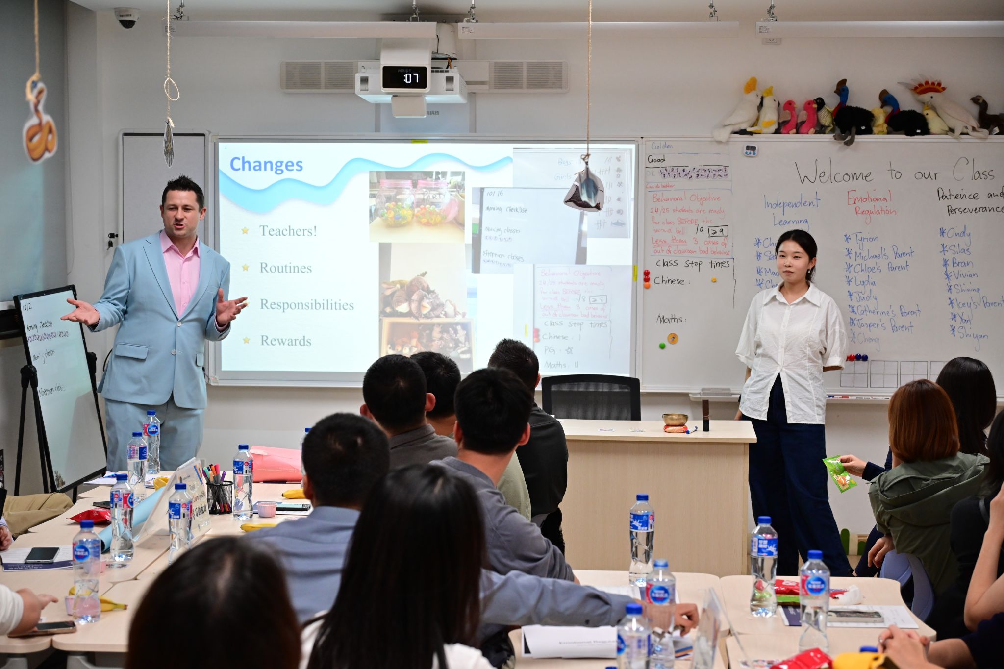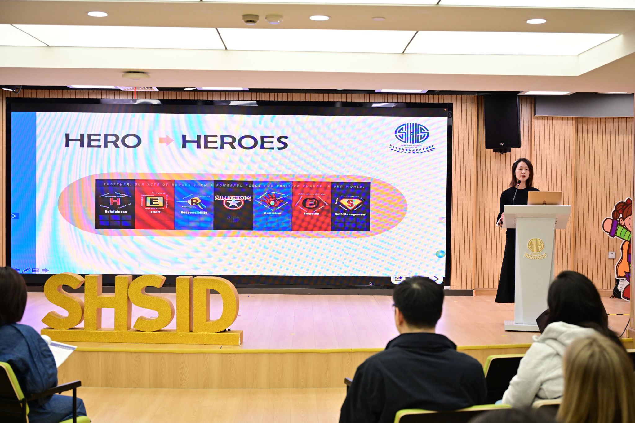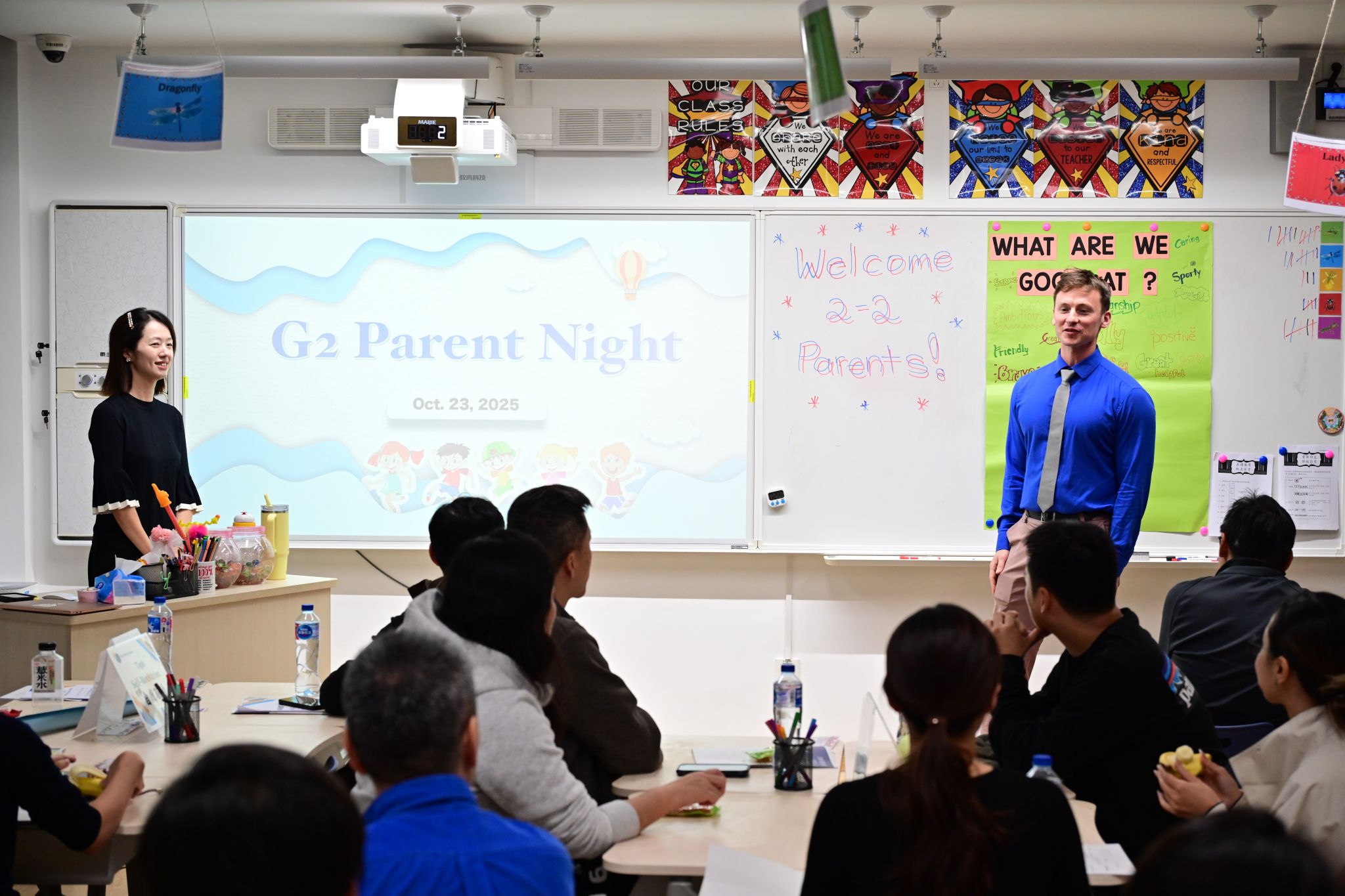 家长会正式开启后,二年级年级组长赵老师首先发言,围绕 “二年级核心成长变化与进阶发展期望” 展开分享。她详细介绍了个人成长课程核心价值观从 HERO 升级至 HEROES 的体系,涵盖乐于助人、努力进取、责任担当、乐观积极、共情同理及自我管理六大维度。通过 “Goal Setting” 目标设定、“每月一主题” 品德教育及社会情感学习课程,学校系统性地助力学生在知识习得与品格塑造上共同进阶。
