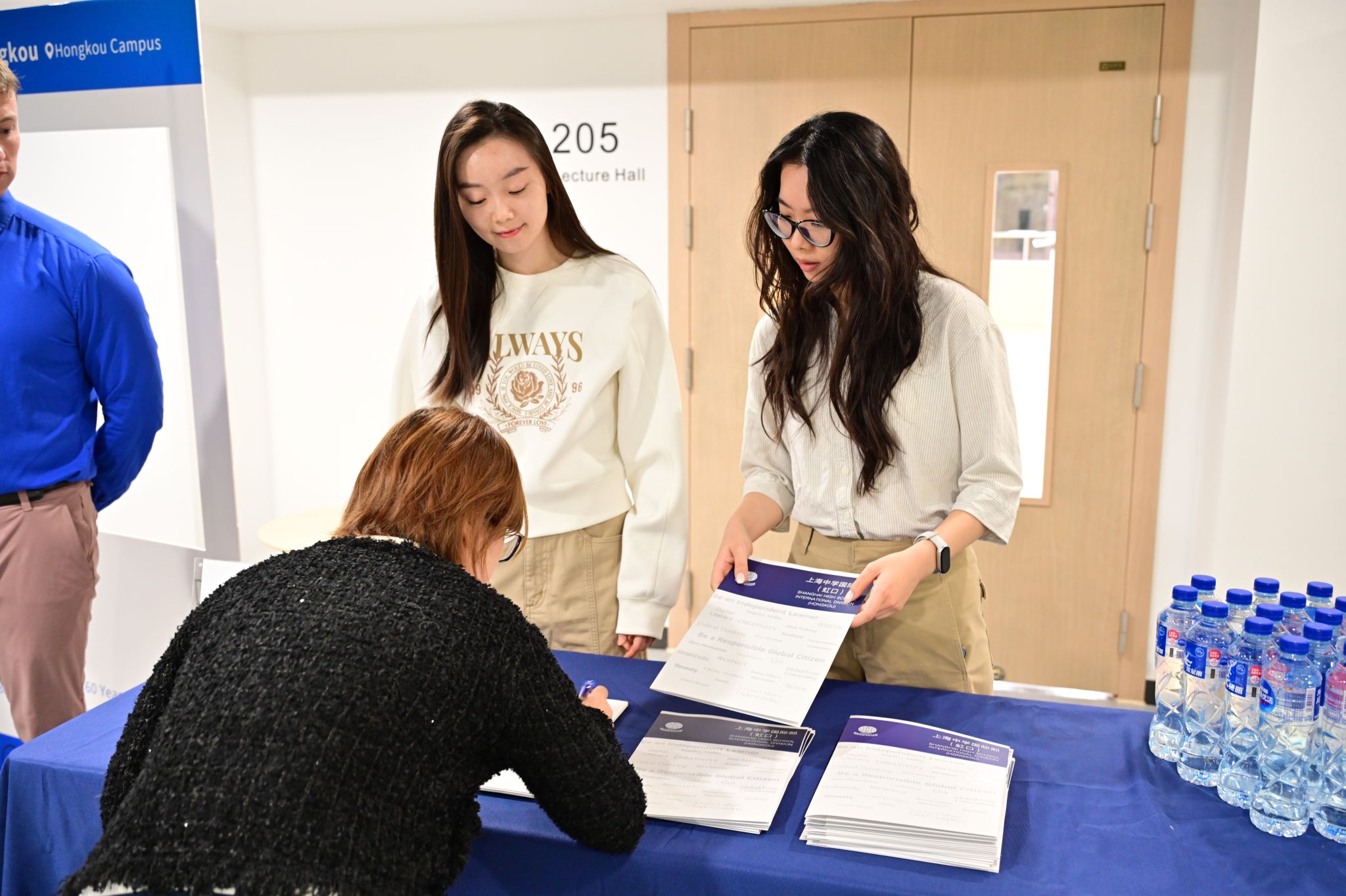 会议伊始,家长们有序签到并领取会议手册,为家校共育提供实用参考。现场大屏幕循环播放学生课堂互动、社团活动片段,温馨的氛围让家长们快速融入这场 “成长对话”。