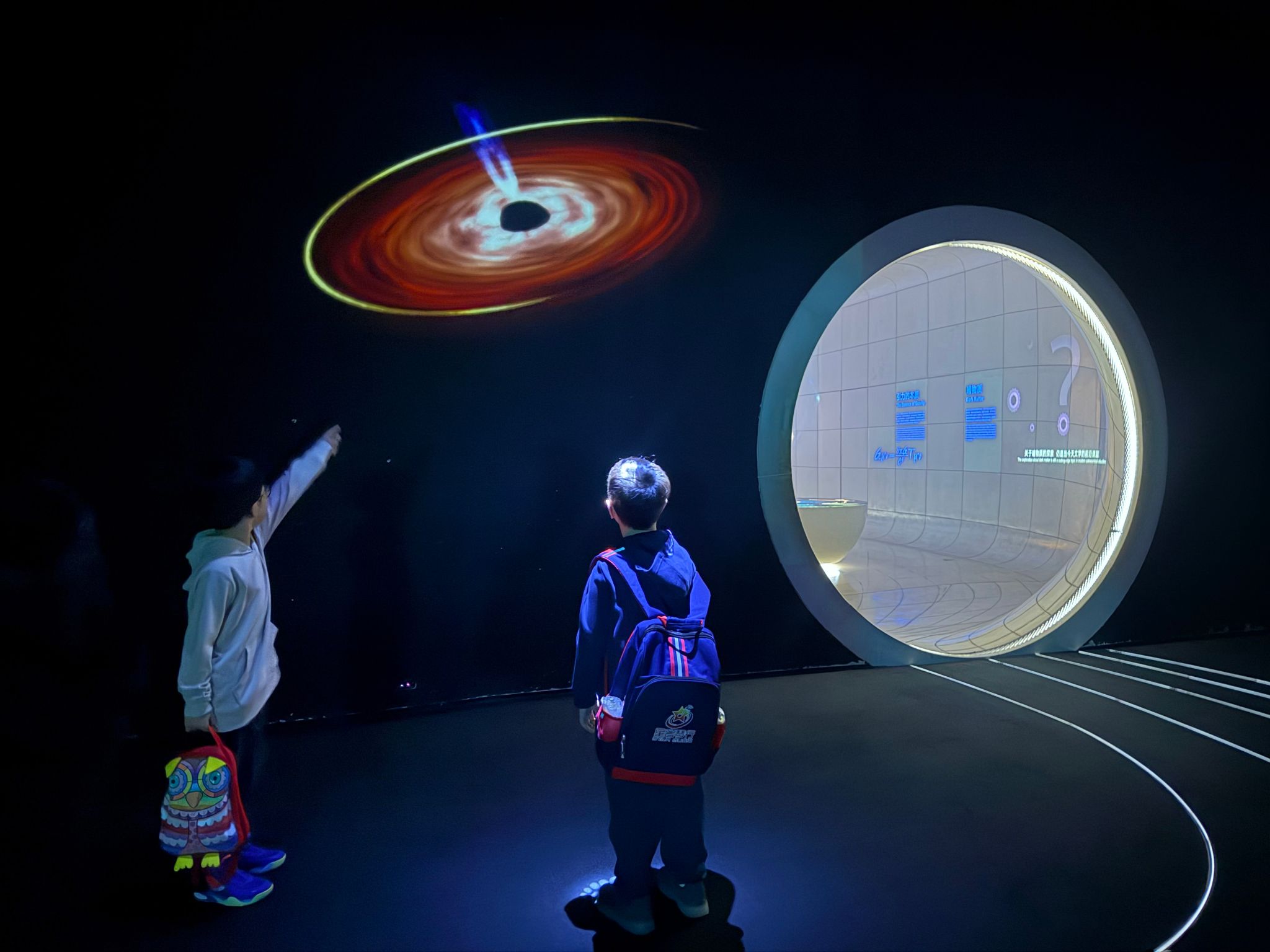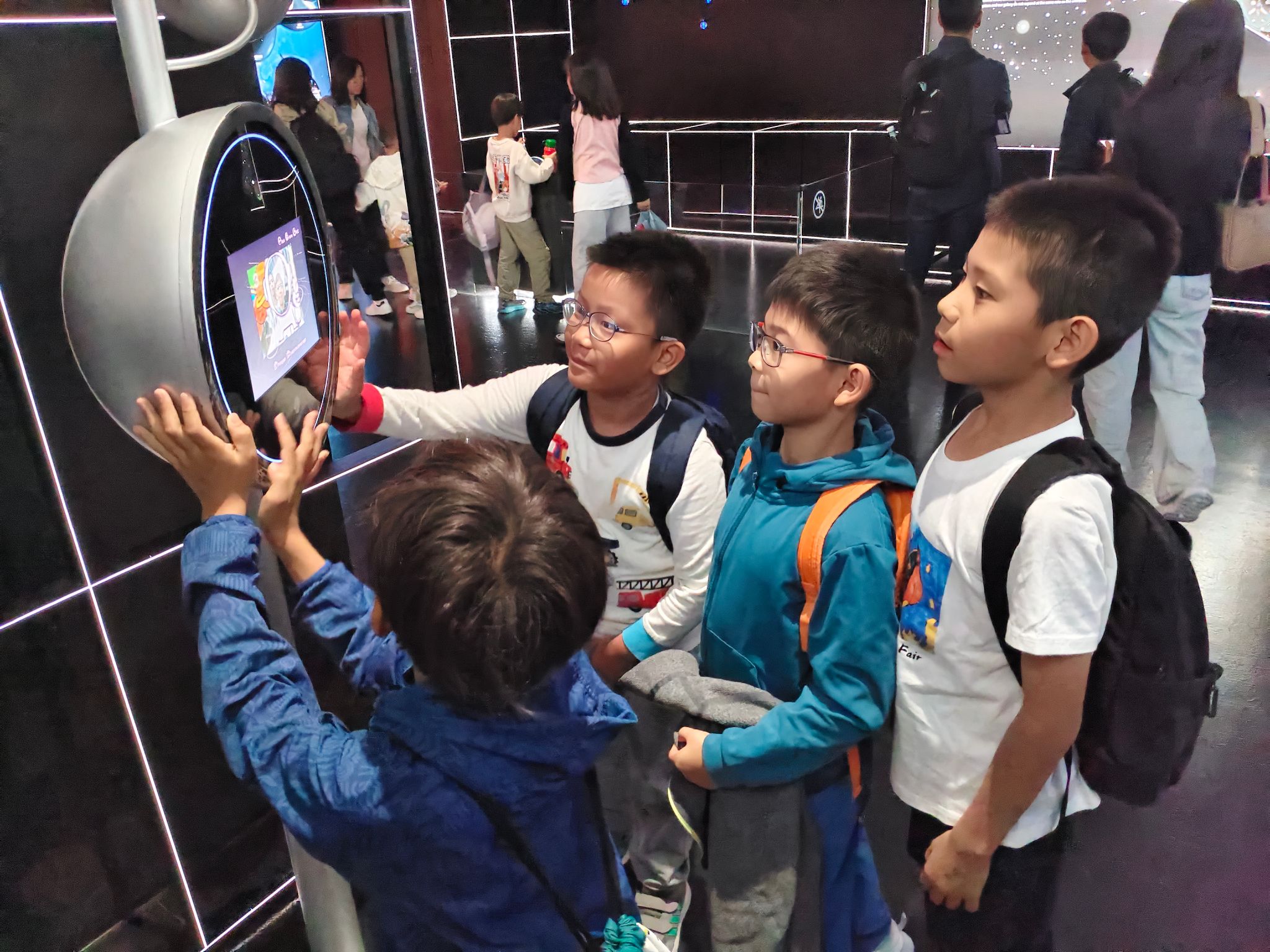在“宇宙”展区,孩子们沿着“时空”、“引力”、“光”等主题线索,展开了对宇宙更深层次的思考。尽管有些概念对低年级的孩子而言略显深奥,但那些互动装置、有趣的动画演示以及震撼的视觉呈现,极大地激发了他们的探索欲,种下了热爱科学的种子。