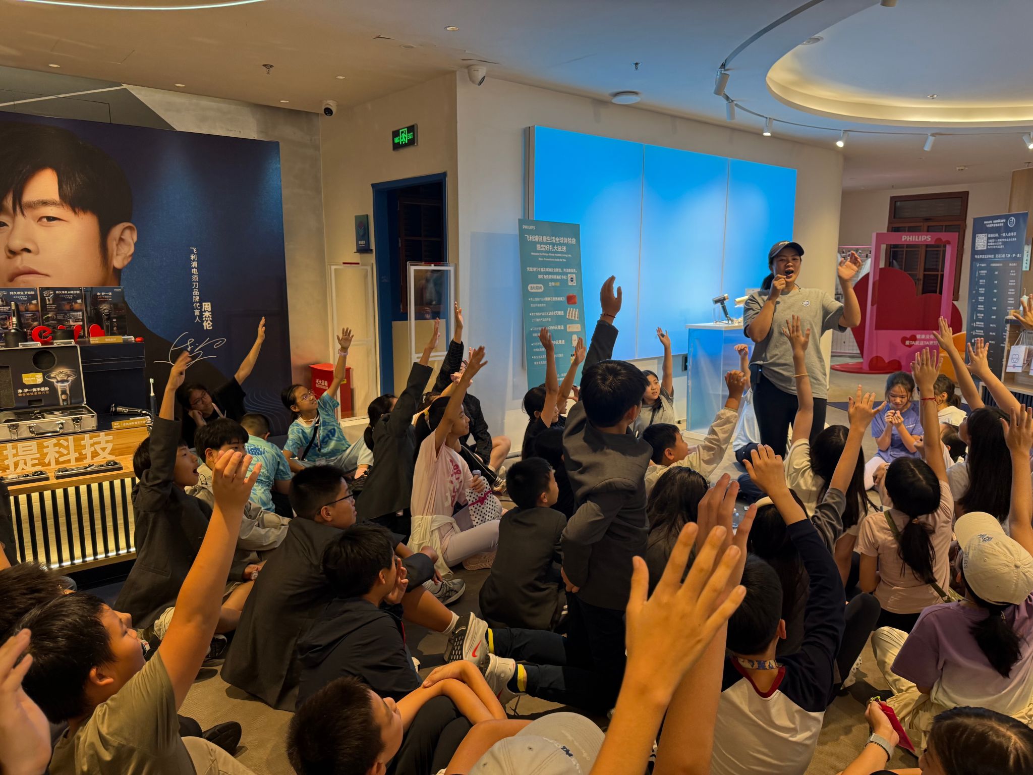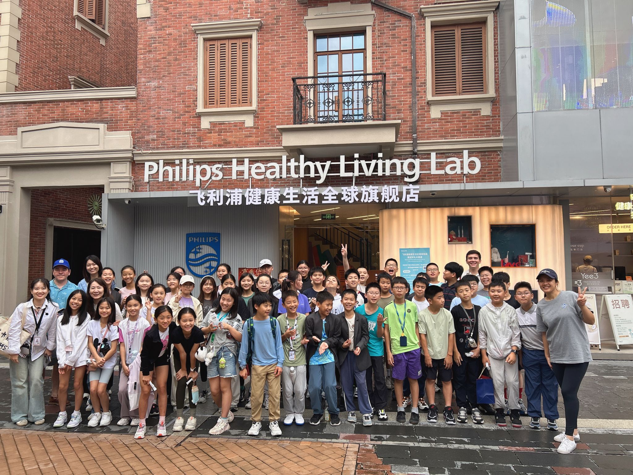 第五组同学参观了“飞利浦健康生活Lab”线下体验中心,开启了一场关于健康与科技的探索之旅。在充满未来感的沉浸式空间中,店长带领同学们认识了“会发光”的护肤剃须刀、能自动调档的智能电动牙刷等多款科技感十足的家用好物,每一件产品都闪耀着智慧的光芒。