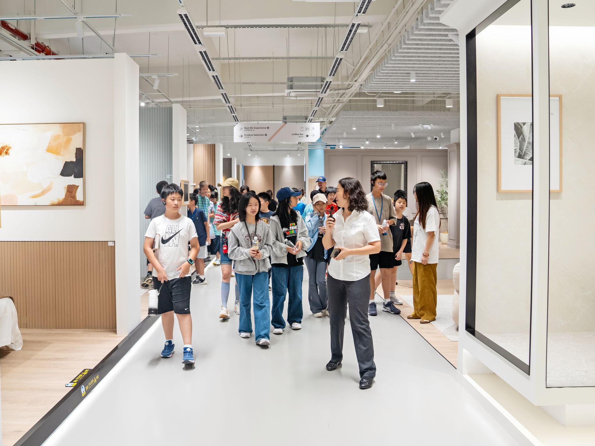 第四组同学前往英科再生有限公司,深入了解环保与再生科技。在建材展览馆,同学们看到了回收塑料制成的家具与建材,直观感受到“变废为宝”的科技力量。