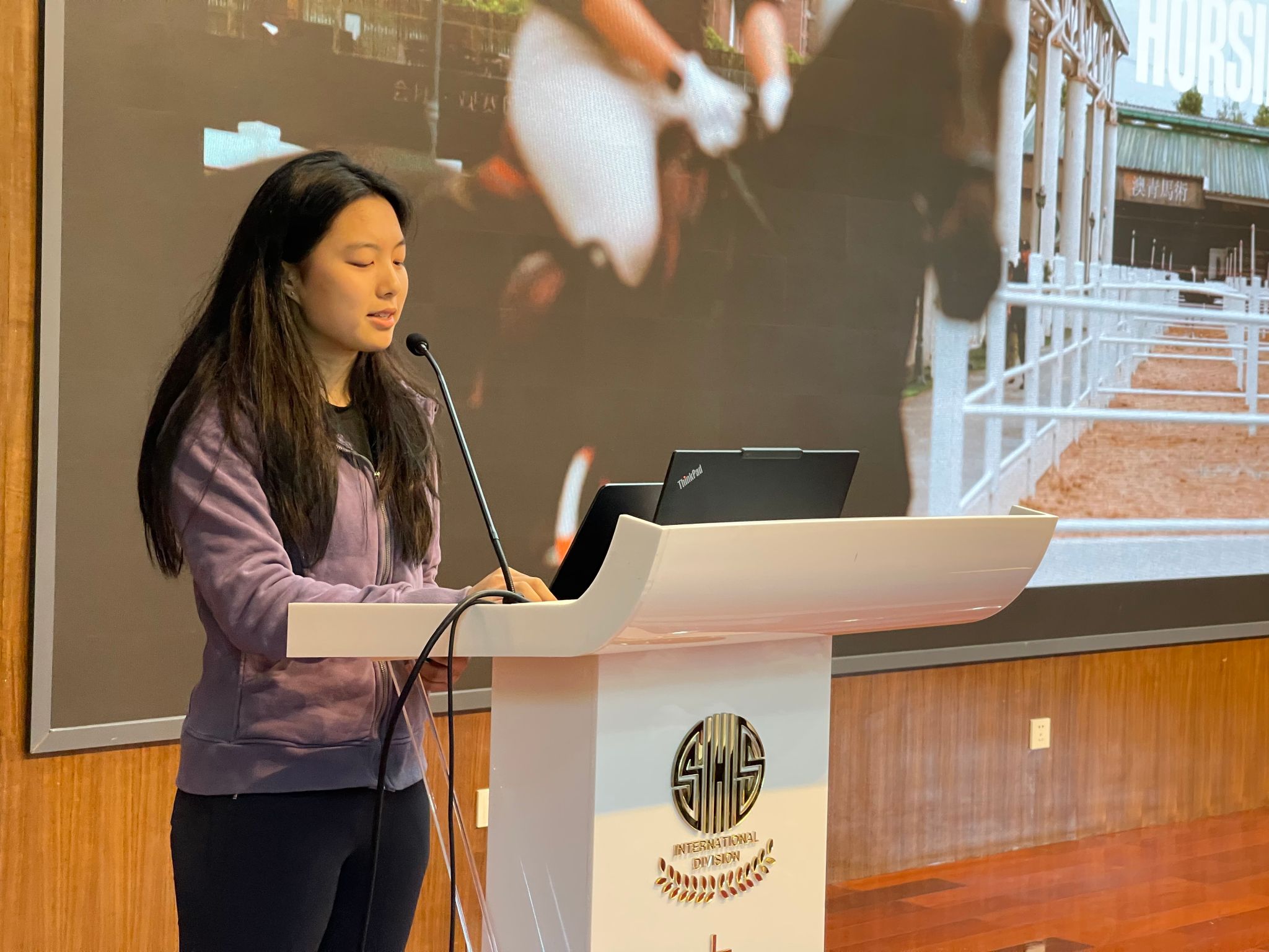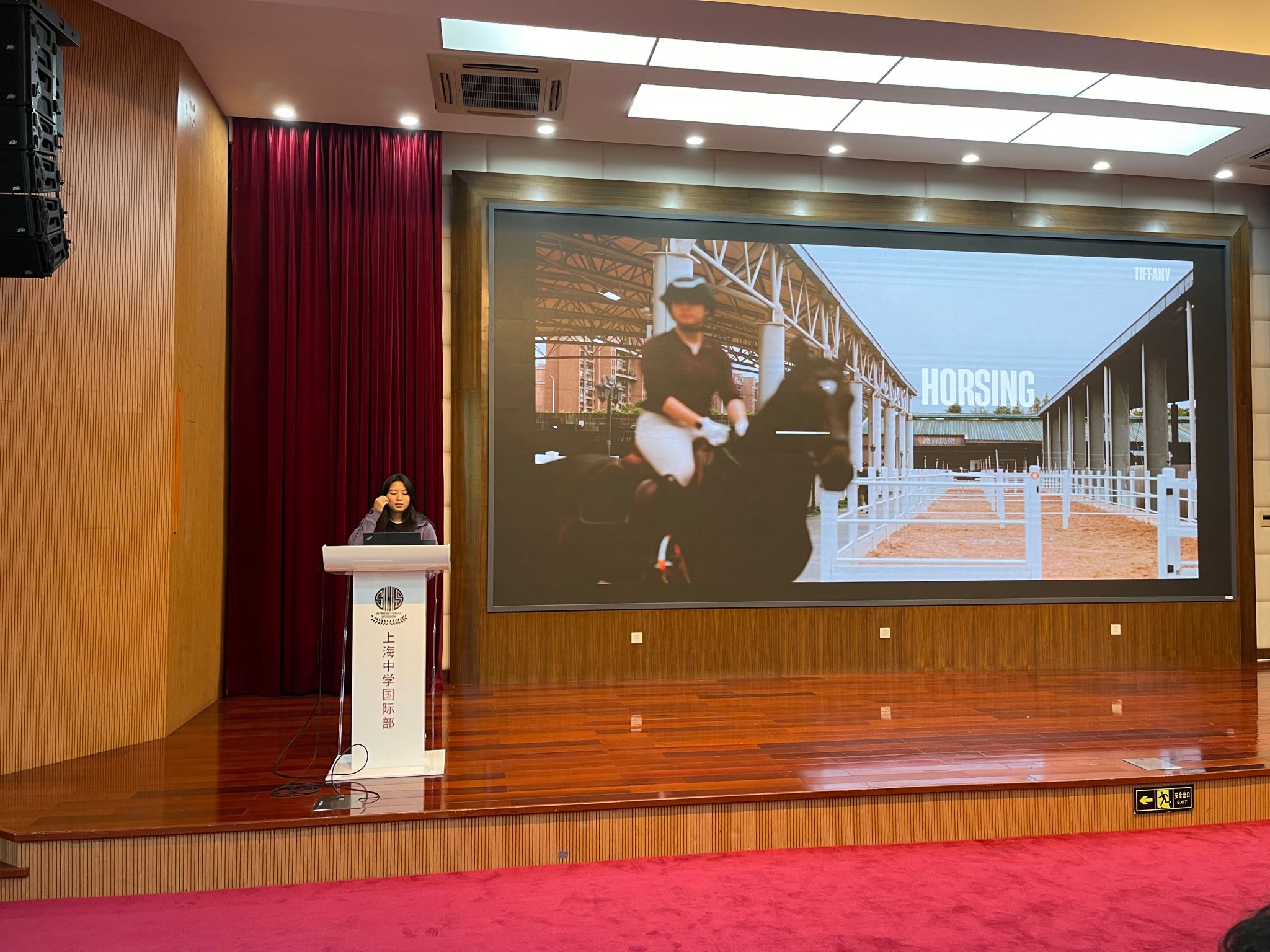 2025年10月24日早晨,上海中学国际部12年级的同学们齐聚先棉堂辅楼礼堂,参与每周一次的年级晨会。本次晨会邀请了来自12(10)班的王同学,分享她的马术经历。