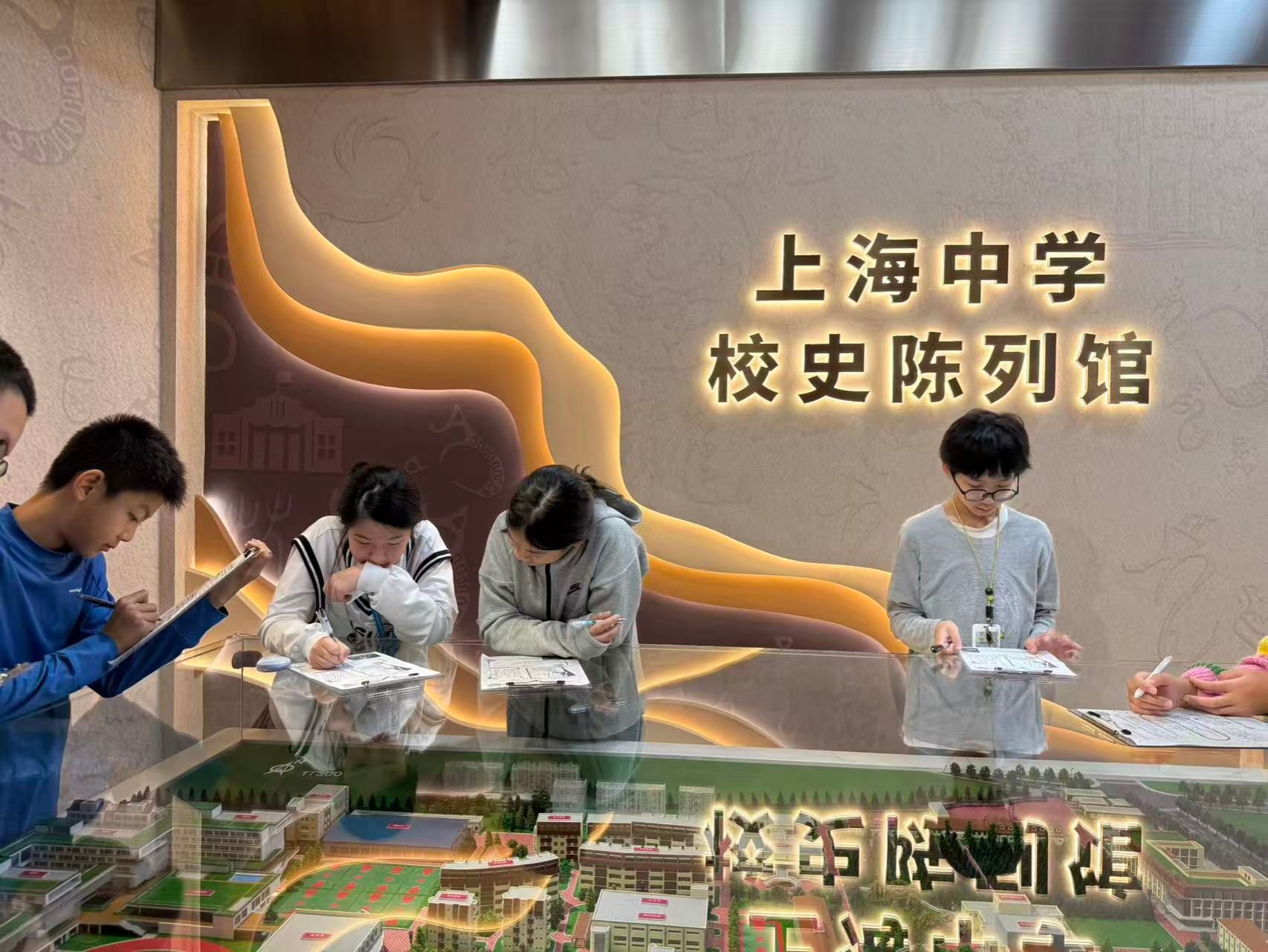 翌日,学生走进校史陈列馆,完成“寻找长者故事”与“绘制时间地图”两项任务。他们在泛黄影像中追溯老校友、老教师的感人故事,在时间线上标注学校自1865年创校至今的重要节点,深刻感受教育事业的延续与“尊师重道”的价值。