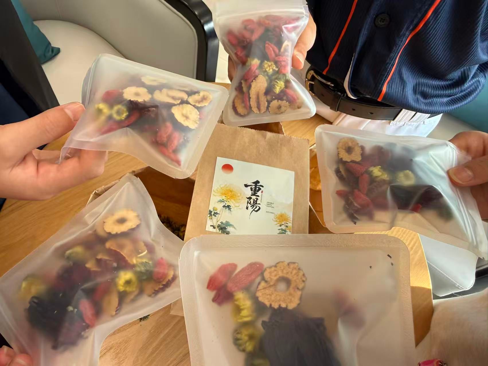 作为活动收官环节,学生通过“拼贴诗创作”“感恩卡片书写”与“制作茶包送长辈”三项任务传递敬老之情。他们将亲手制作的茶包与充满创意的拼贴诗、感恩卡一同装入牛皮纸袋,送给家中的长辈,在金秋时节献上了一份稚拙而真诚的礼物。