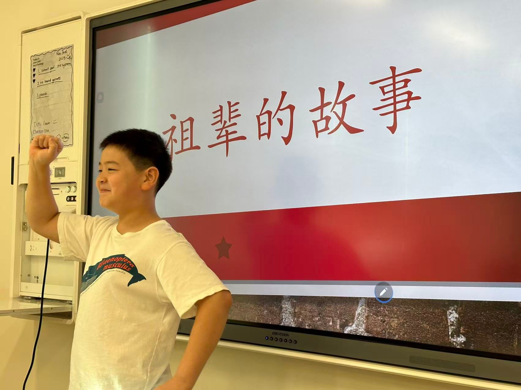 10月31日,学生携带采访提纲回家聆听祖辈的校园记忆,并于班级分享会上用中文配以图画、照片进行讲述。一段段跨越年代的校园故事,在童声复述中焕发新的生命力,成为连接代际情感的文化纽带。