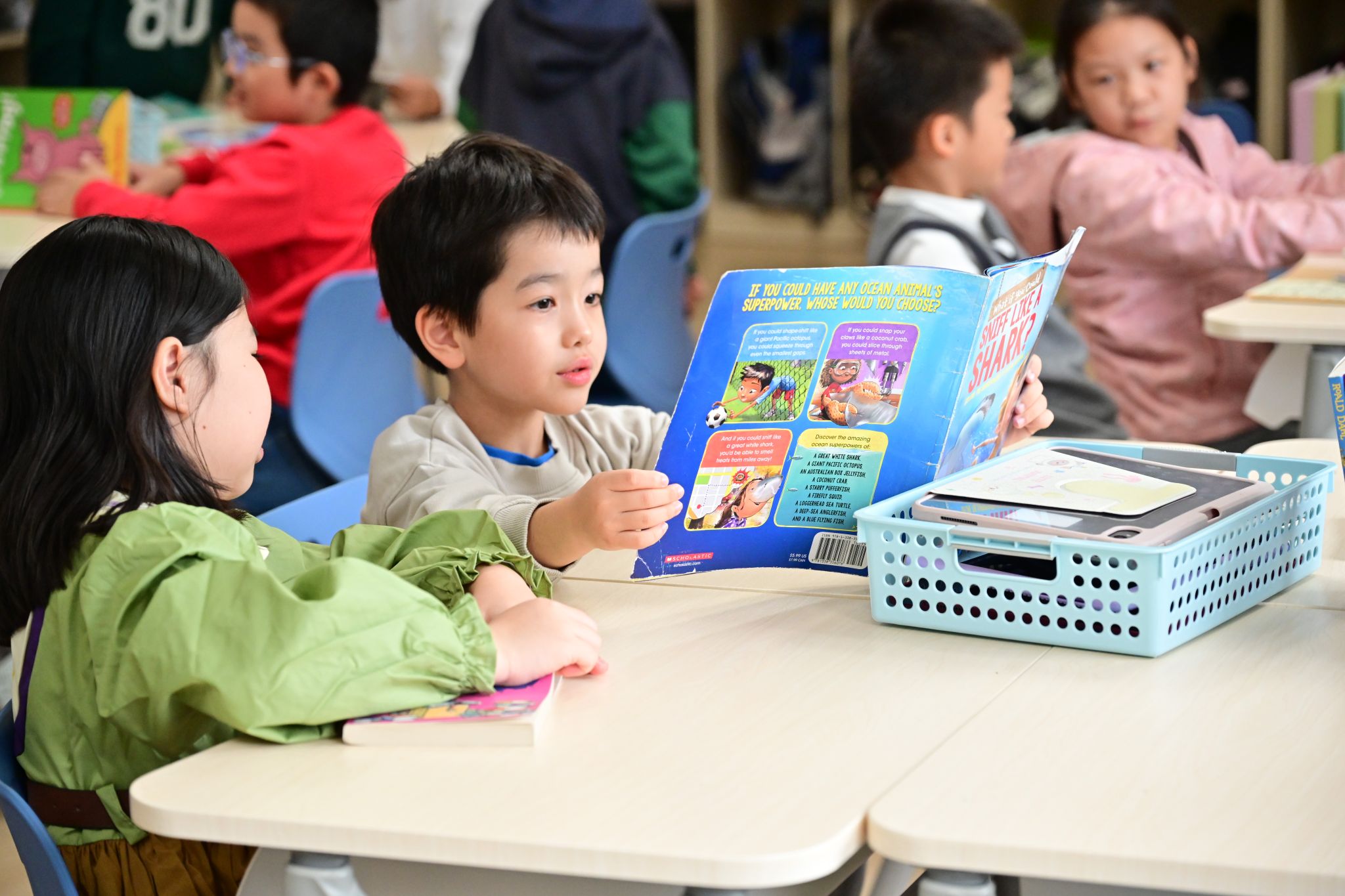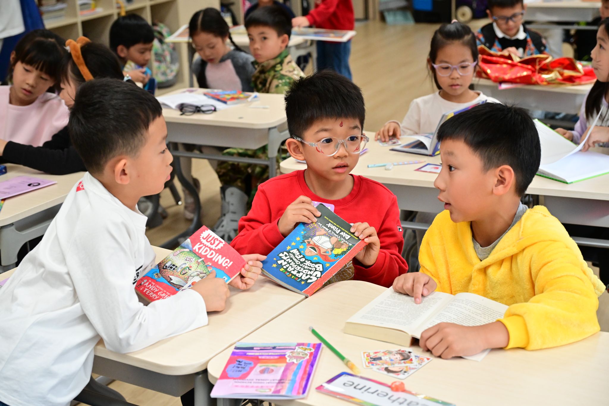 除了各自年级的精彩活动,本周四的“阅读伙伴”日更是一次别开生面的体验。不同年级的学生们结对成组,轮流为彼此朗读自己最喜欢的书页,分享自己在这一周探索到的故事奥秘。这一刻,阅读超越了课堂与年级的界限,不仅在书香中传递了知识与乐趣,更完美地诠释了本次作者周“共享故事、激发想象”的核心精神。