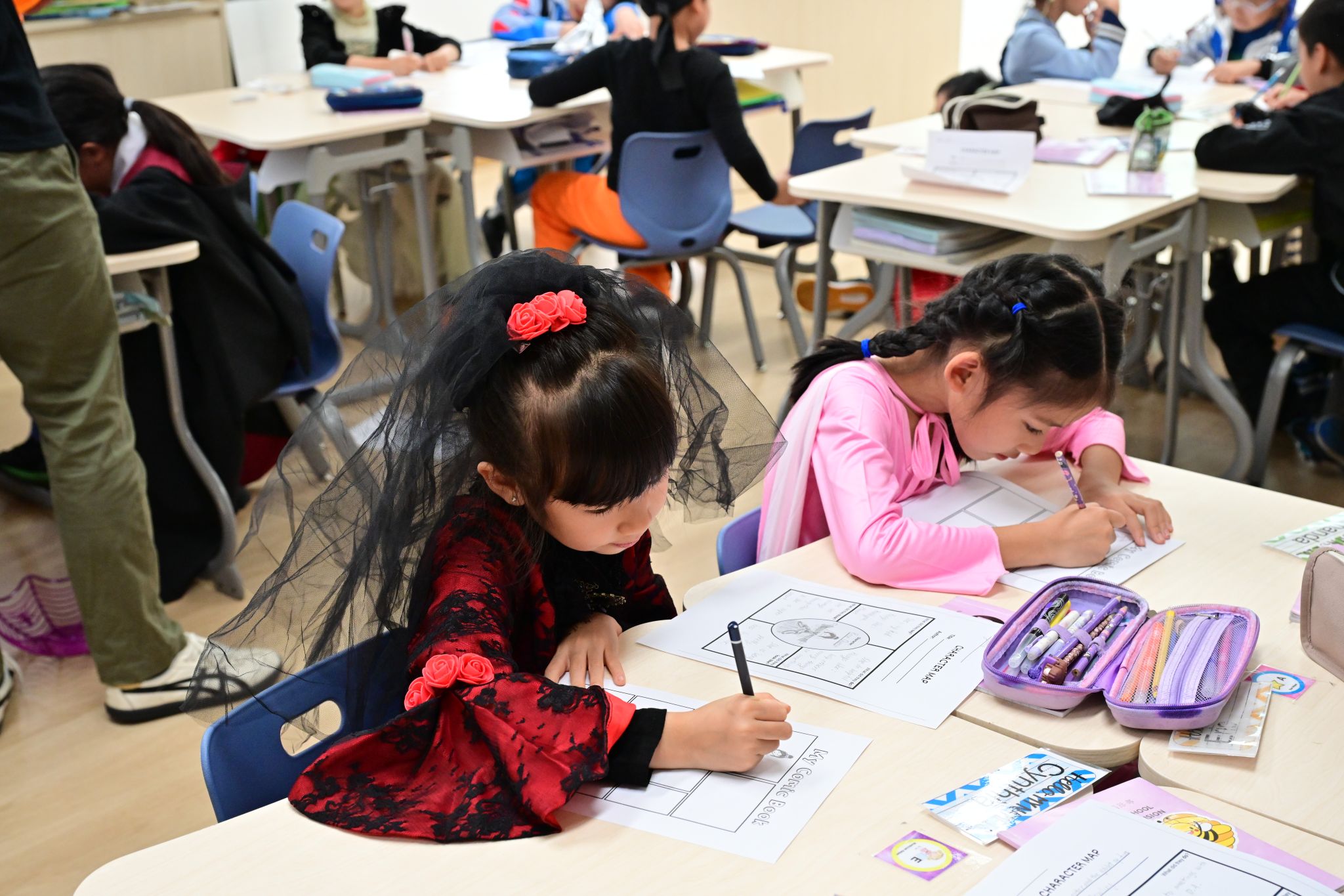 周四的“自制英雄日”见证无数创意英雄降临校园。孩子们与家人利用旧衣物、布料等材料,亲手打造出独一无二的超级英雄造型。不同年级的“阅读伙伴”欢聚一堂,分享最喜爱的故事,场面温馨动人。